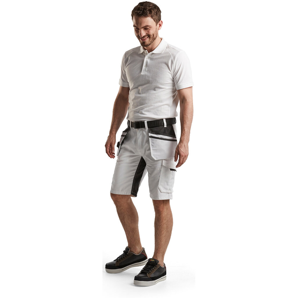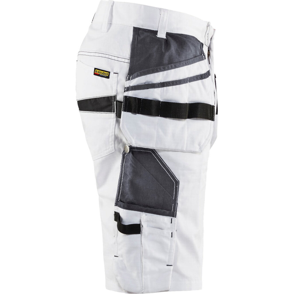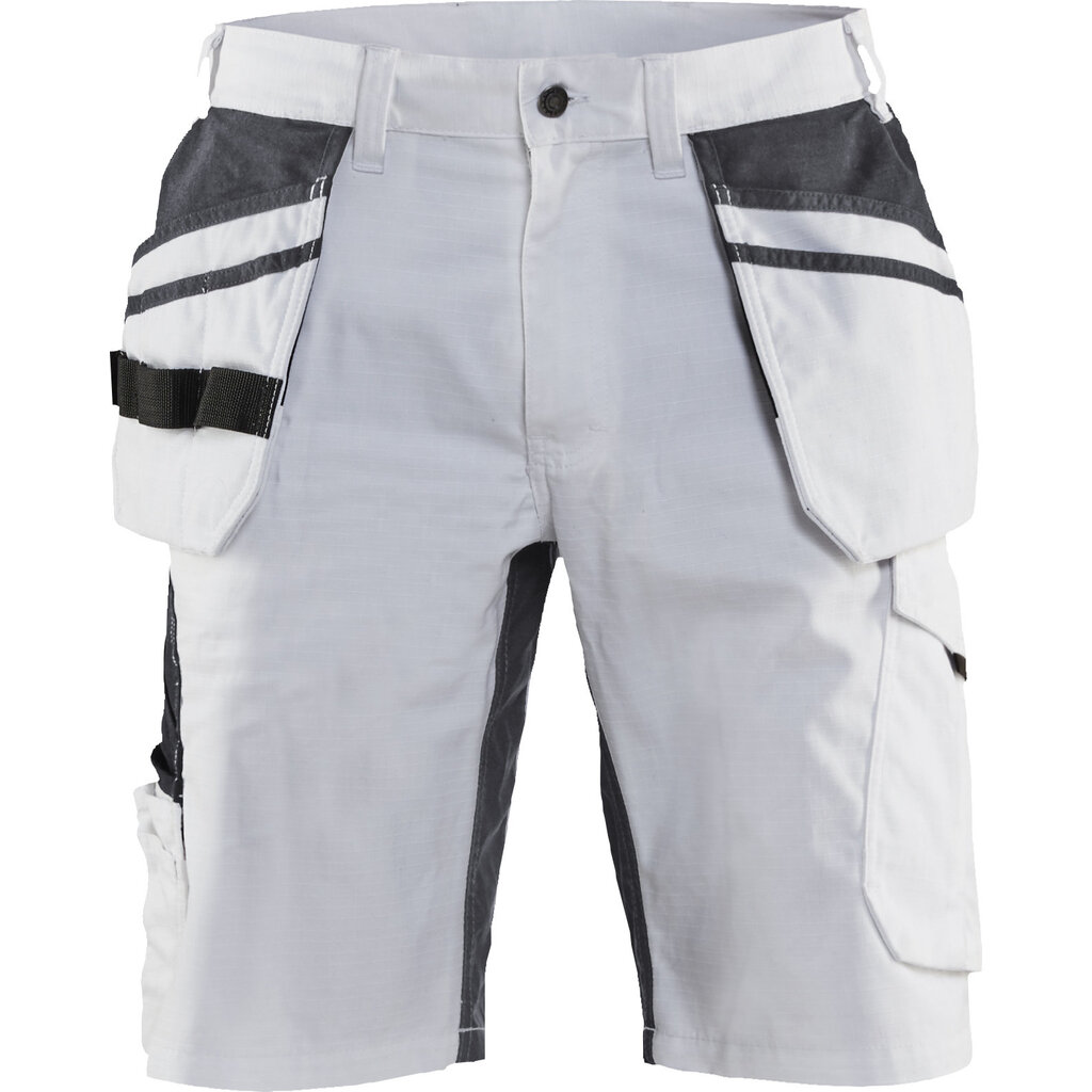 Deze korte broek van Blaklader is gemaakt van lichtgewicht ripstop-materiaal en is perfect voor de zomer. Ripstop is een zeer sterk materiaal dat bestand is tegen slijtage en goede scheurbestendigheid heeft. Daarnaast heeft de broek met CORDURA® versterkte spijkerzakken en plamuurmeszak, en een telefoonzak van mesh aan de binnenkant. De broek heeft stretch in het kruis voor extra comfort en bewegingsvrijheid. Deze broek is ideaal voor schilders.