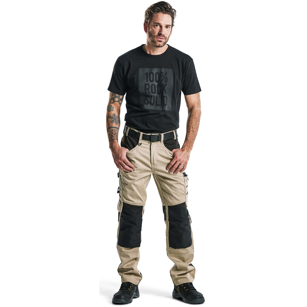 Deze comfortabele stretchbroek heeft zakken die allemaal makkelijk te bereiken zijn, zoals een telefoonzak van stretchmateriaal met ruimte voor de meeste soorten mobieltjes, een tweetal achterzakken met plooi en hamerlus, een versterkte duimstokzak, pennenzak en meshouder.