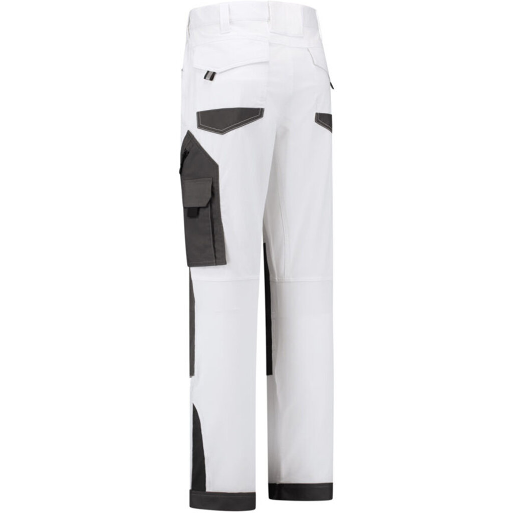 Deze 4-weg stretch broek is misschien wel de goedkoopste stretch werkbroek op de markt. De broek is gemaakt van stevige ripstop stof en heeft Cordura stretch kniezakken. De werkbroek heeft voorgevormde pijpen voor een comfortabele pasvorm. De broek heeft twee steekzakken, twee achterzakken, een duimstok-/rolmaatzak, een dijbeenzak met telefoonzak en een D-ring. Dit maakt de broek zeer praktisch. De onderkanten van de pijpen zijn verstevigd met Cordura voor extra duurzaamheid. Ook is de onderkant van de pijp extra zichtbaar door middel van zwarte reflectie. De broek heeft een YKK ritssluiting. De broek is verkrijgbaar in vier kleuren.