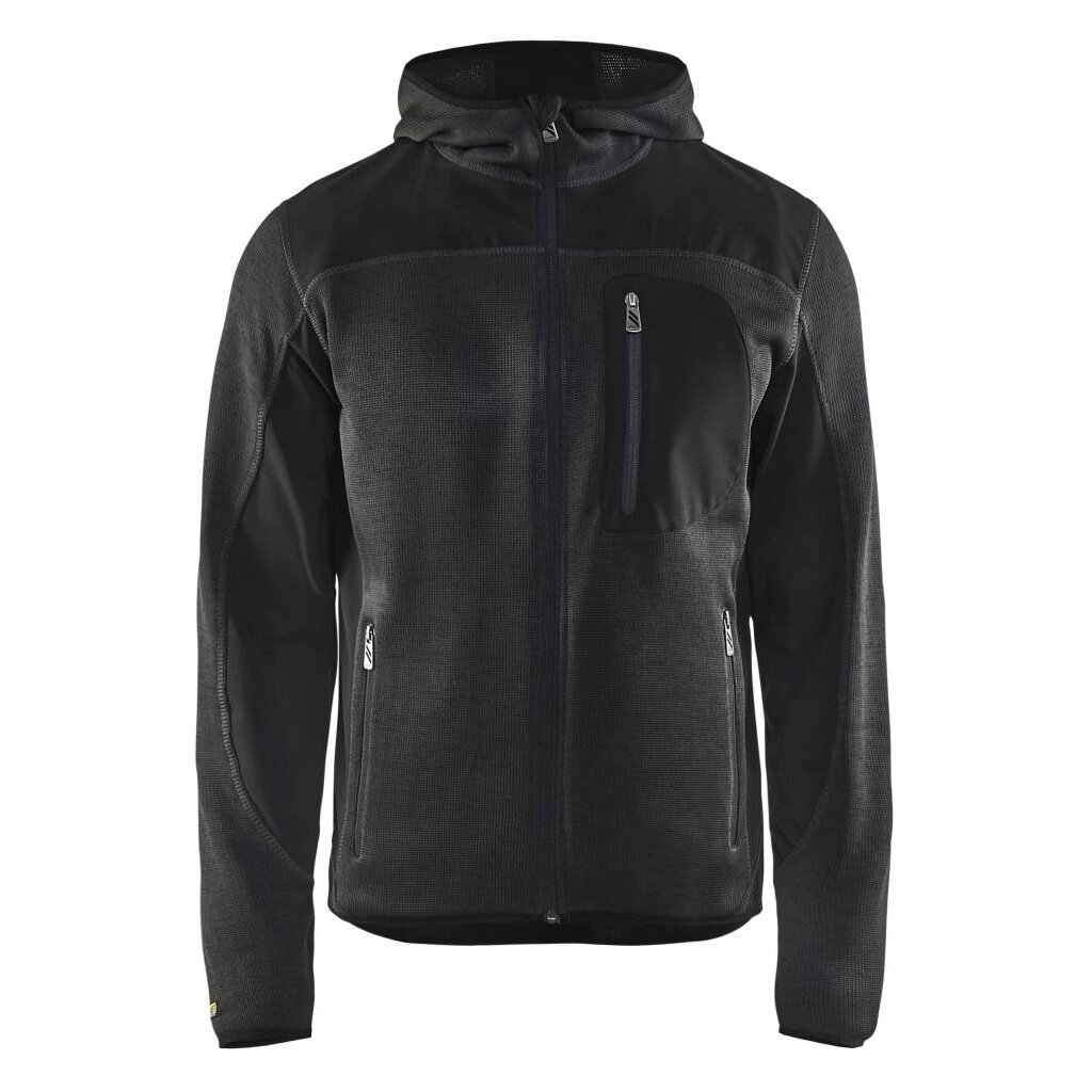 Gebreide herenvest, versterkt met softshell.