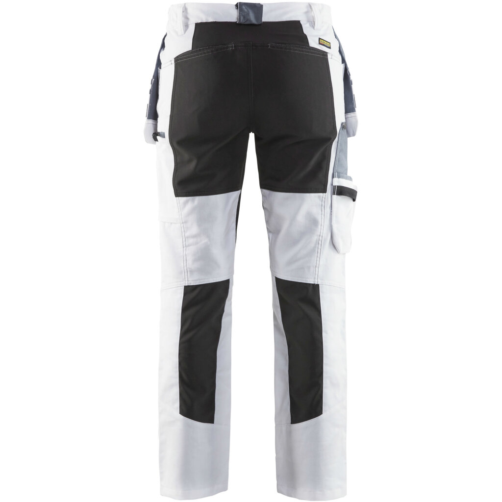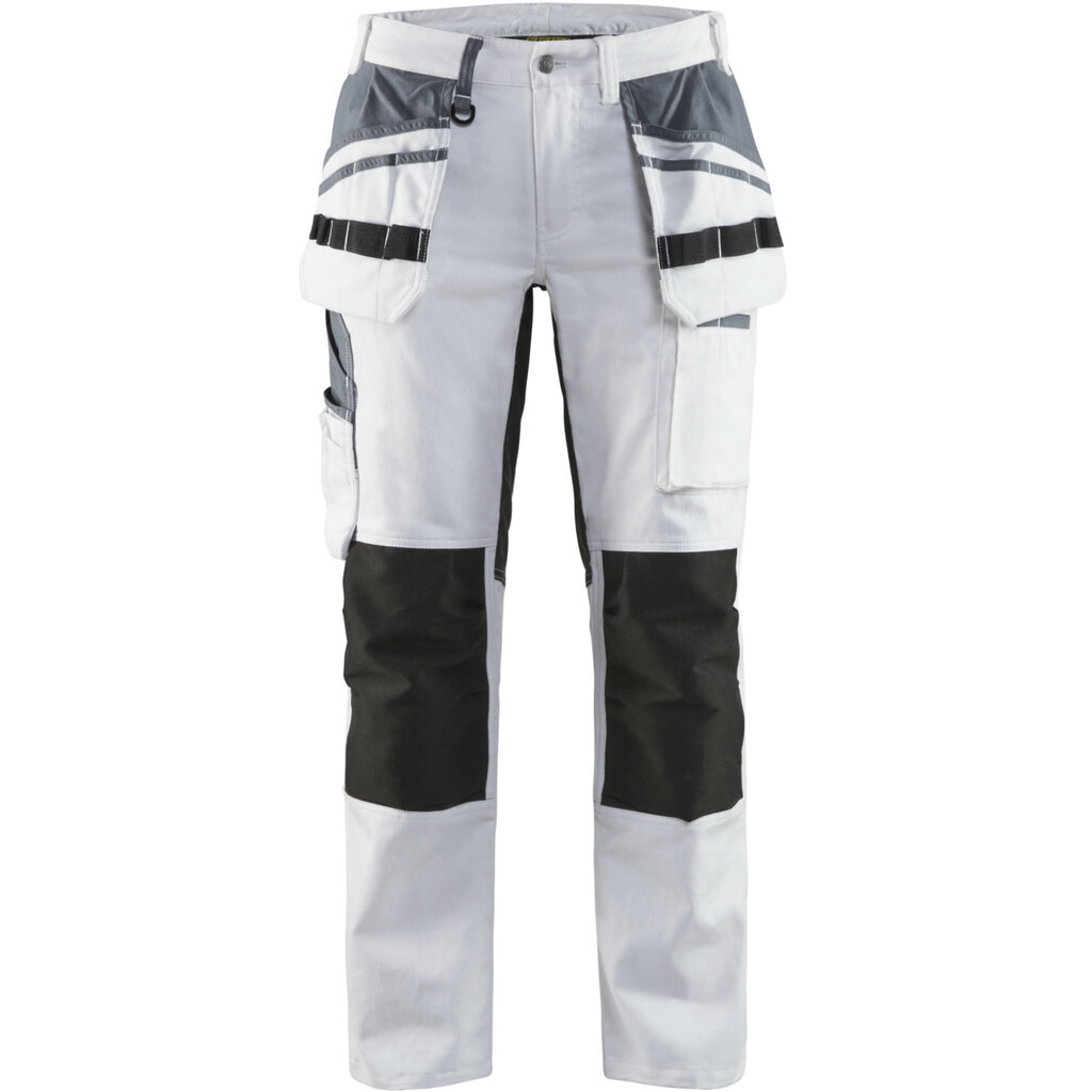 De schilders werkbroek is voorzien van gereedschapszakken, kniebescherming zakken aan buitenkant en stretchmateriaal op belangrijke plekken voor meer flexibiliteit en draagcomfort. De stof van deze Blaklader 7910 dames werkbroek voor schilders heeft uitstekende verf absorberende eigenschappen dankzij het hoge percentage katoen. Deze witte damesbroek heeft diverse functionele zakken en een speciaal ontworpen, versterkte verfborstelzak. De gereedschapszakken en spijkerzakken zijn versterkt met CORDURA en de knieën met CORDURA® stretch voor meer comfort.
