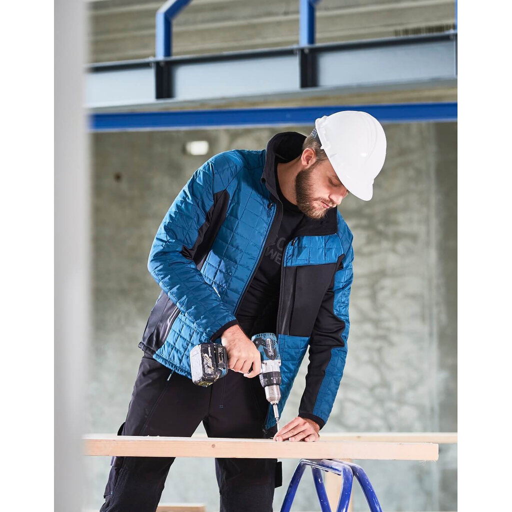 De stretchstof in de zijden zorgt voor een prettige hoeveelheid bewegingsvrijheid, gesteund door de ergonomisch gevormde mouwen. Deze fijne werkjas heeft daarnaast elastiek aan de polsen en een verstelbaar elastisch rijgsnoer aan de onderkant én in de hoge kraag.