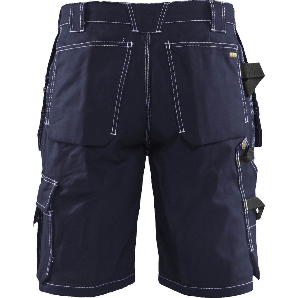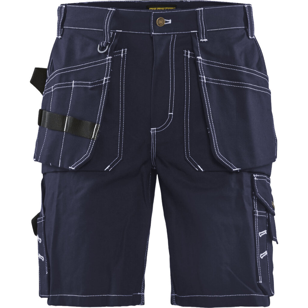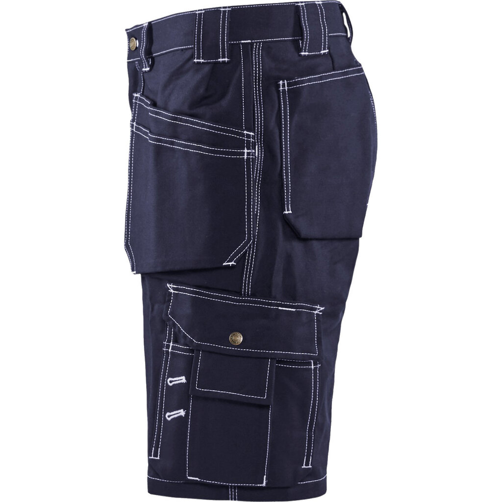 Een vlotte korte broek van Blaklader herkenbaar aan het typische twill materiaal en de witte stiksels.