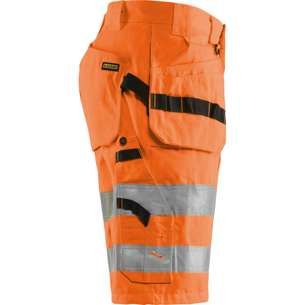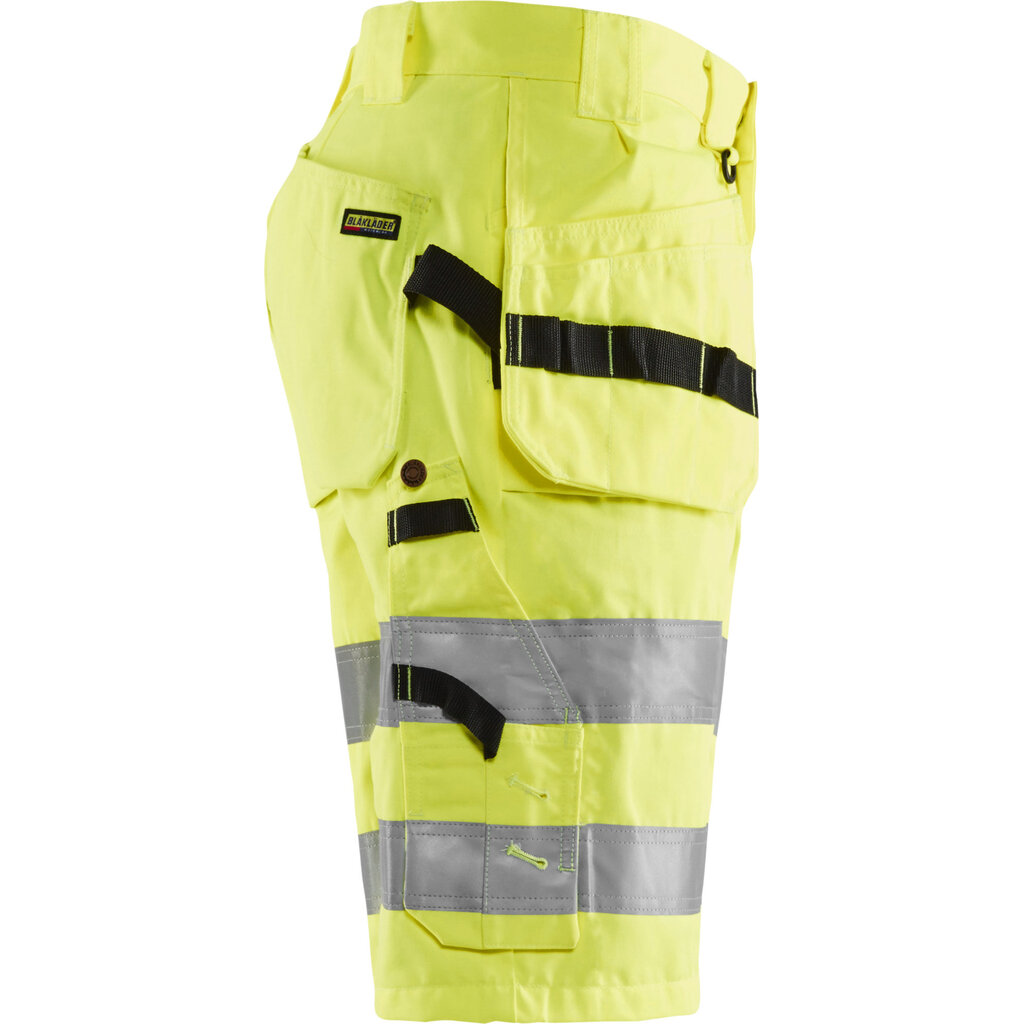De Blaklader 1535 is een werkbroek waarmee je op warme dagen koeler blijft en zo je werk kunt blijven doen. Tegelijk is hij uitgerust met vrijwel hetzelfde aantal nuttige extra's en opbergplekken als een lange werkbroek, en voorzien van hoge zichtbaarheidskleuren en strepen.