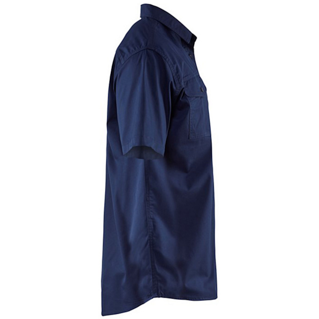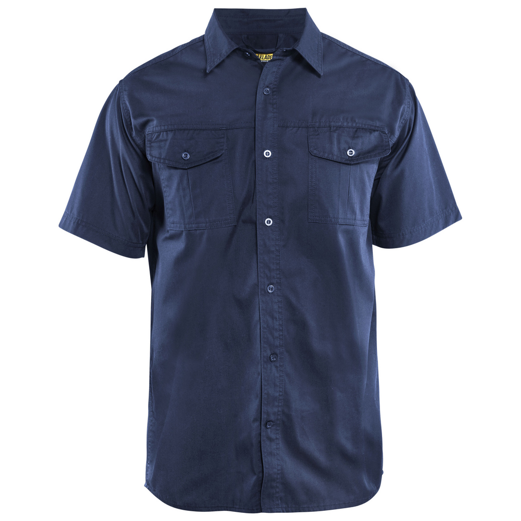 Het overhemd 3296 van Blaklader is voorzien van twee borstzakken met klep en pennenzakje aan de linkerkant.