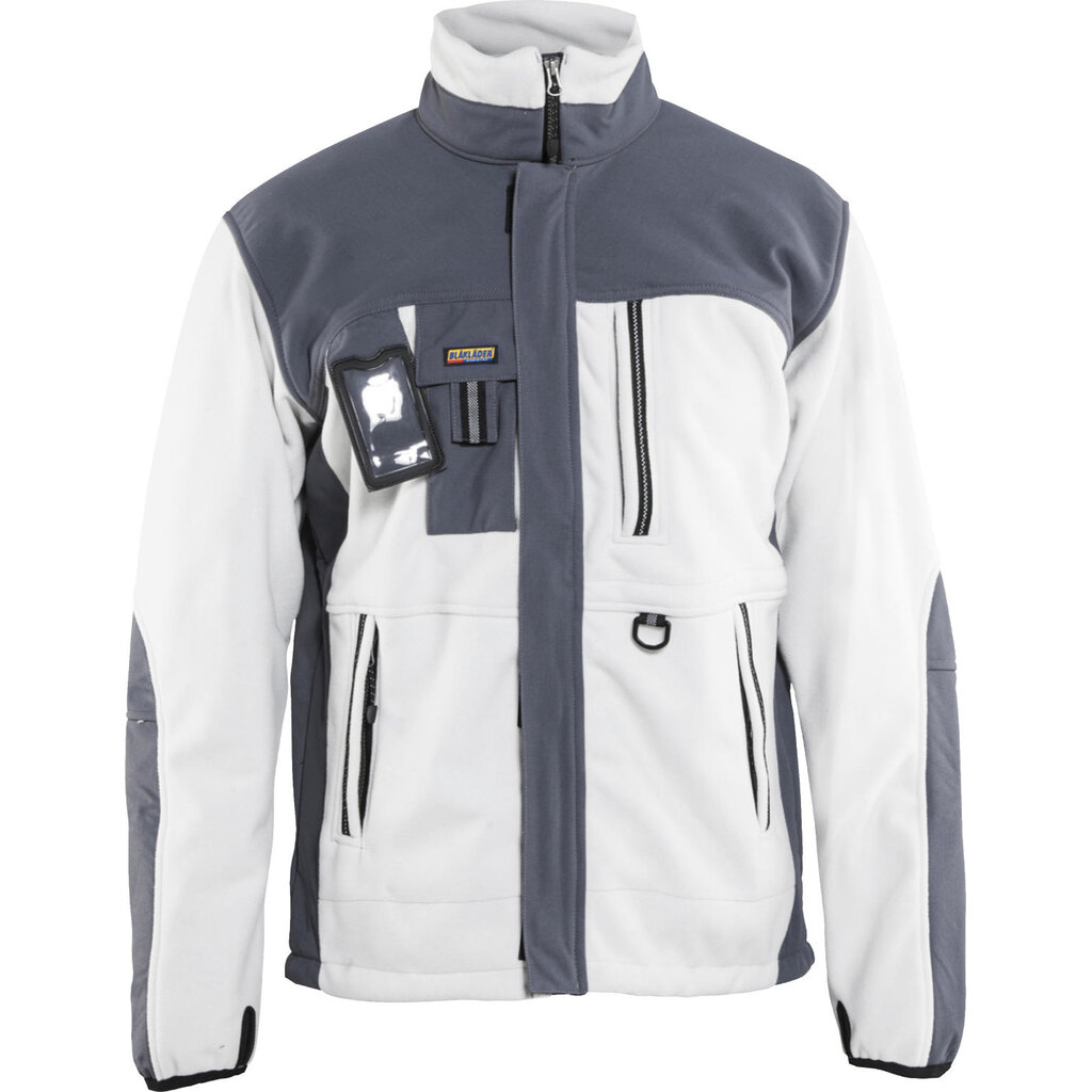 Fleece trui van Blaklader model 4835. Leverbaar in wit-grijs.
