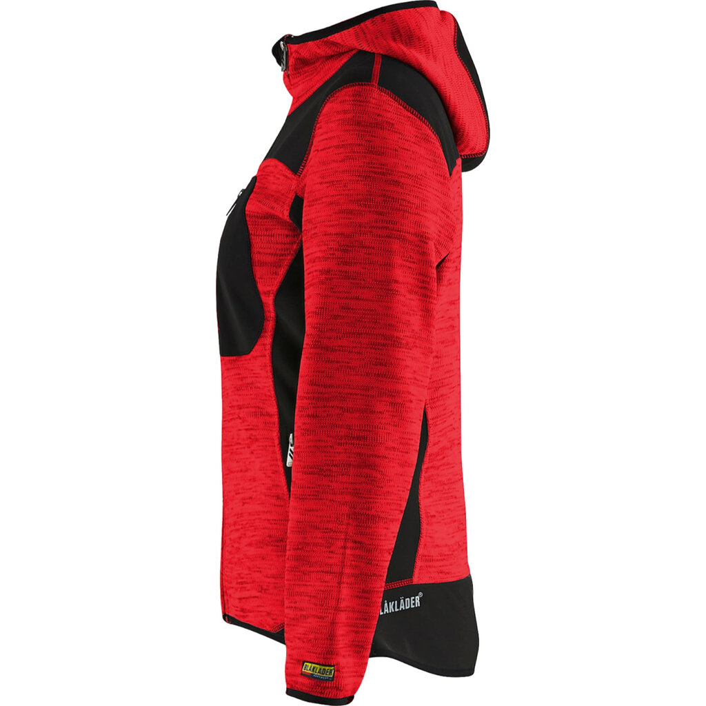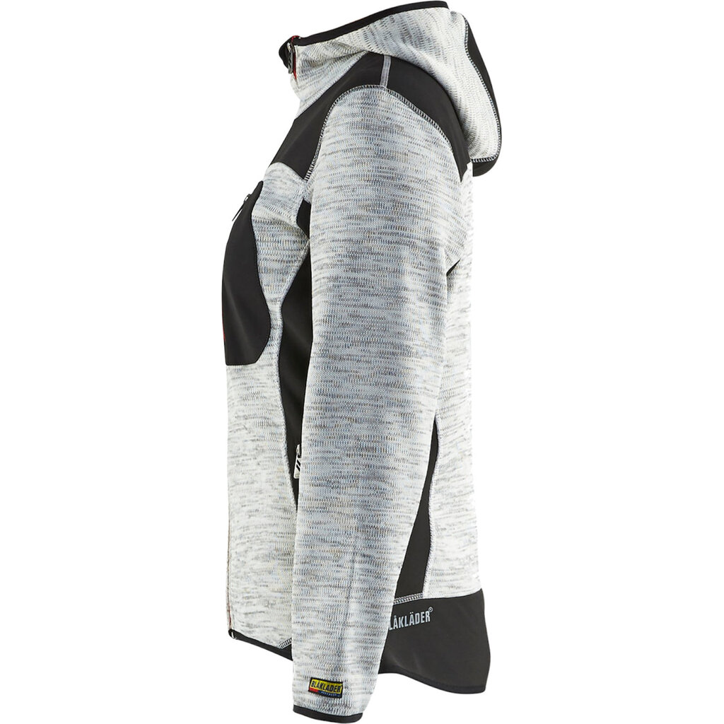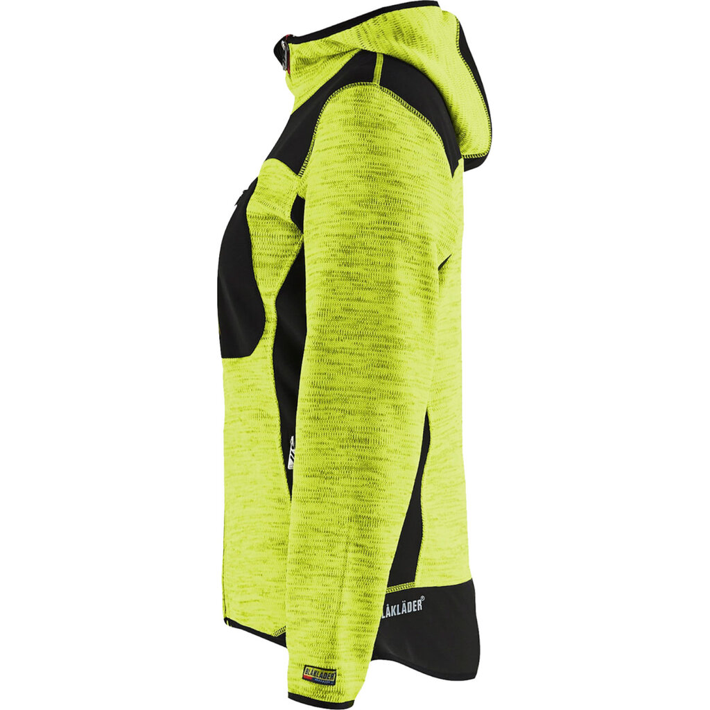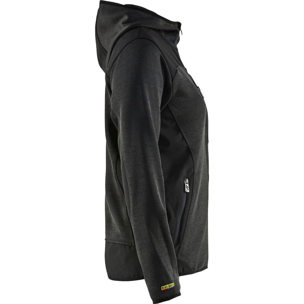 Dit damesvest van Blaklader is gemaakt van comfortabel gebreid polyester en is versterkt met softshell materiaal op de ellebogen, rug en schouders. Hierdoor is het vest extra duurzaam. Het vest heeft handige zakken en heeft een capuchon. Het vest heeft elastiek bij de mouwuiteinden en onderkant van het vest, zodat het goed op het lichaam aansluit en kou buiten houdt.