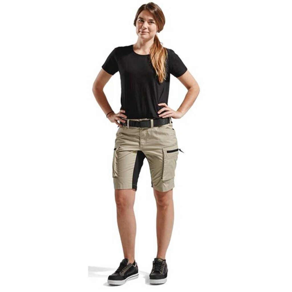Damesshort van Blaklader met stretchmateriaal en een elastische tailleband voor optimale bewegingsvrijheid en draagcomfort. Het materiaal is licht van gewicht, duurzaam en sneldrogend. Kortom, de ideale shorts om in te werken.
