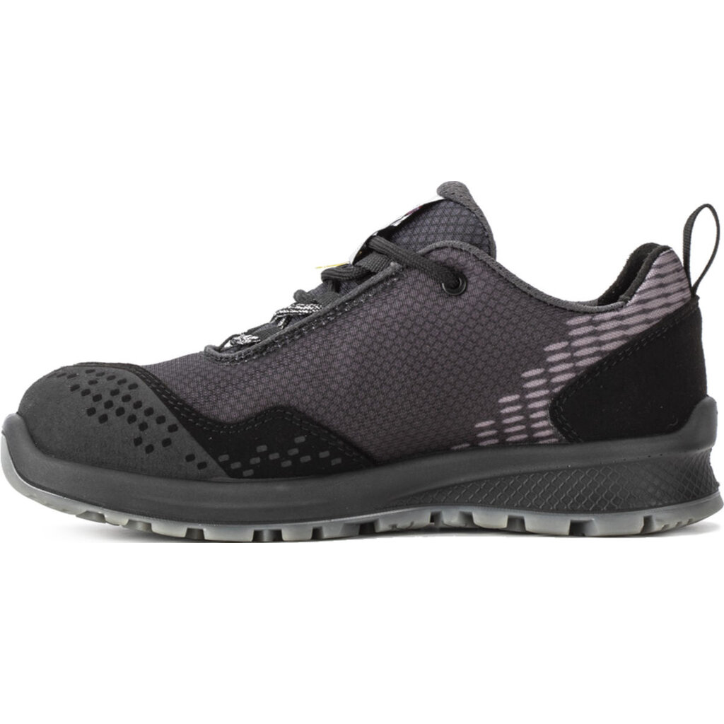 De schoen is voorzien van ESD compound, zodat elektrostatische ladingen continu afgevoerd worden richting de grond. Koolstofvezel WED-strips geven de schoen verdere antistatische eigenschappen.
