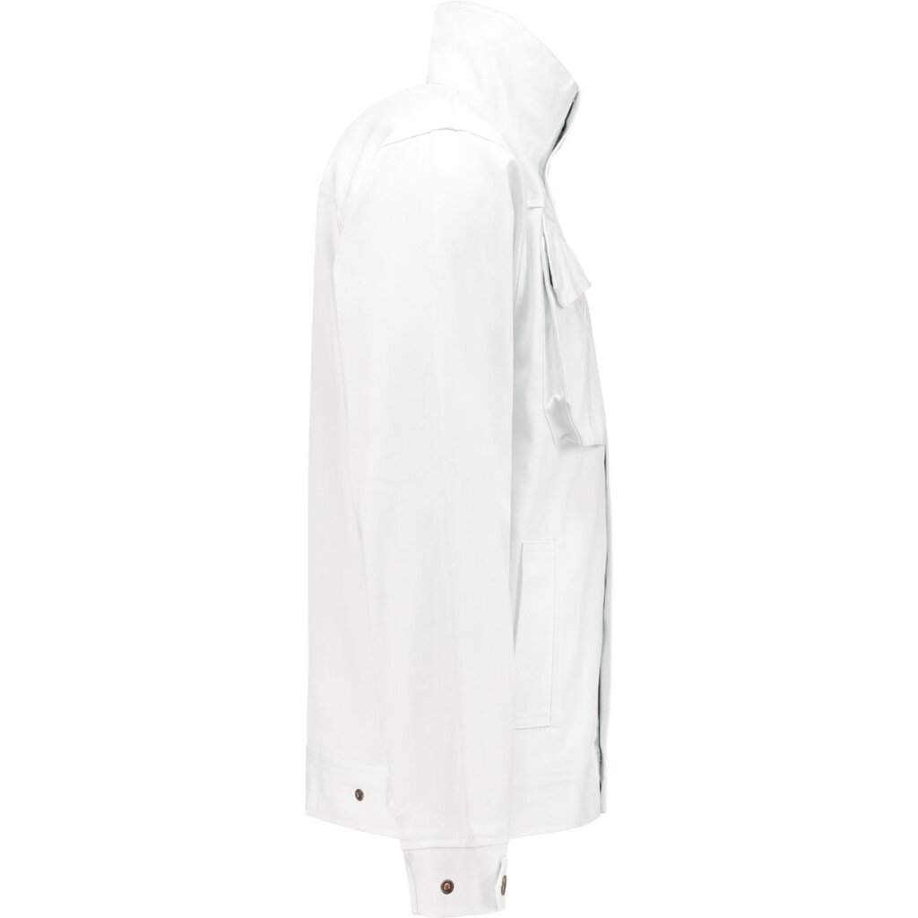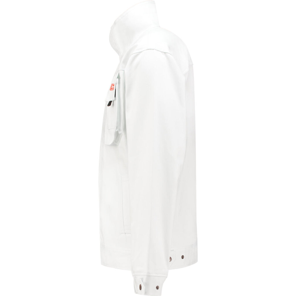 Er zijn twee steekzakken en twee afsluitbare borstzakken, waarvan één met een extra telefoonzakje. Verstelbare manchetten en taille (drukknopen). Deze jas mag op 60 graden worden gewassen én kan industrieel gereinigd worden; hij kan dus goed tegen wat vuil!