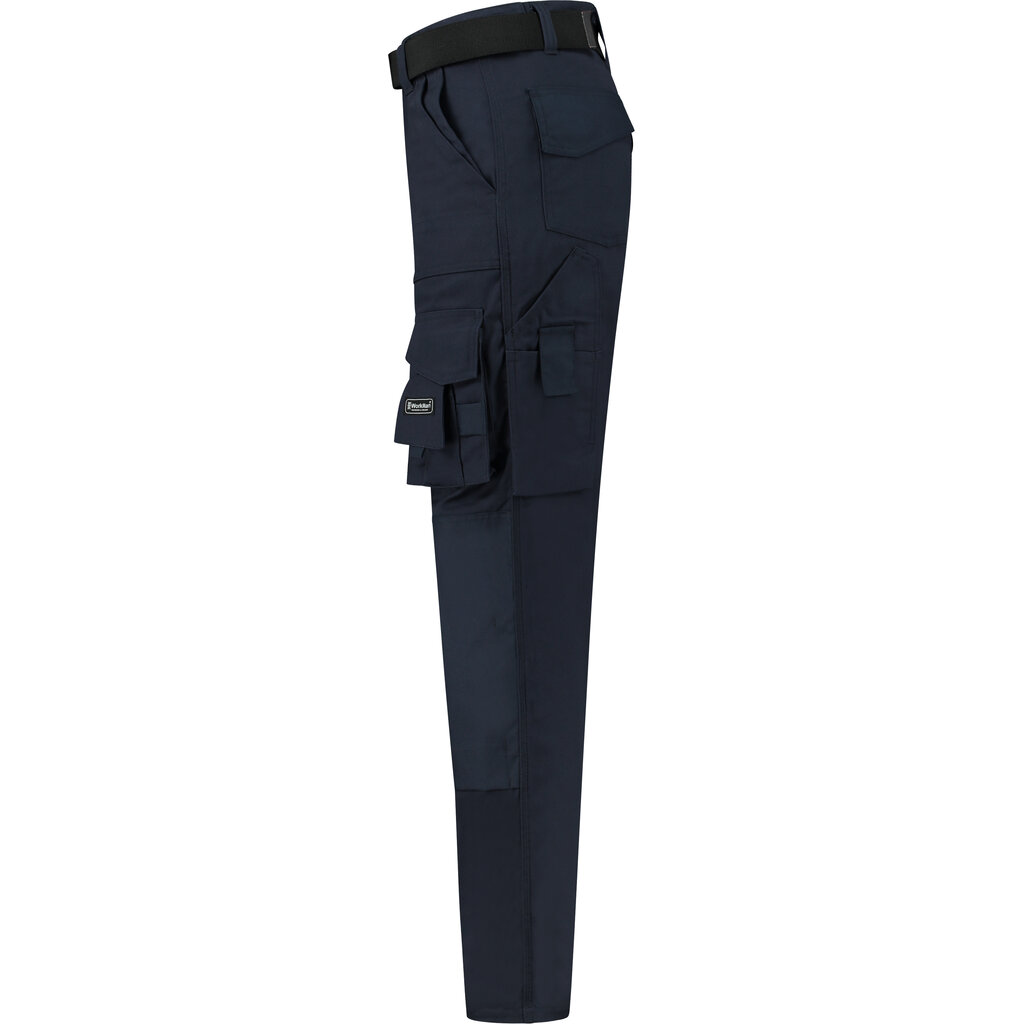 De Classic Worker heeft twee steekzakken, twee achterzakken met klep, een dubbele duimstokzak, een sleutel-/muntzakje met ritssluiting en een dijbeenzak met telefoonzakje.