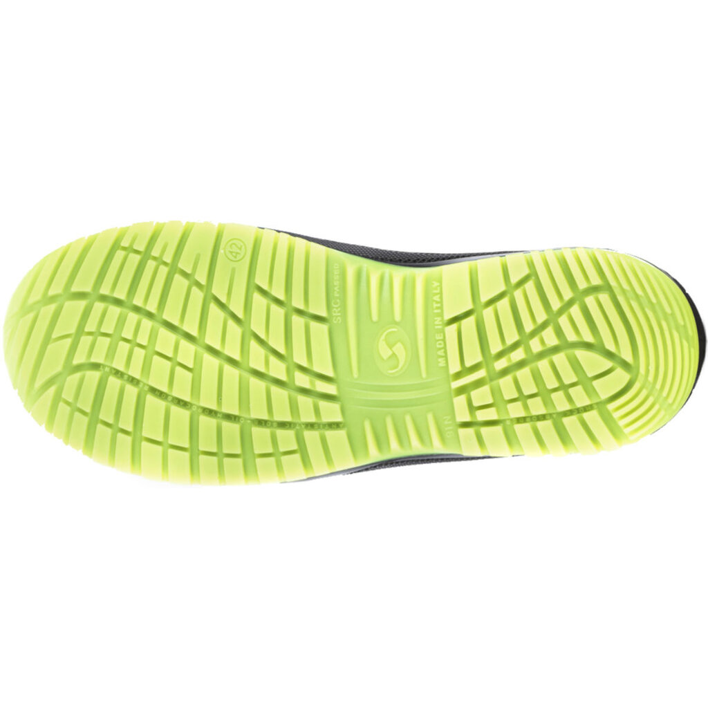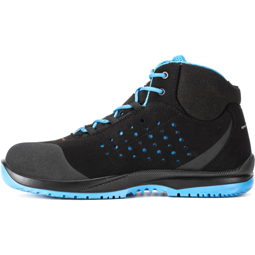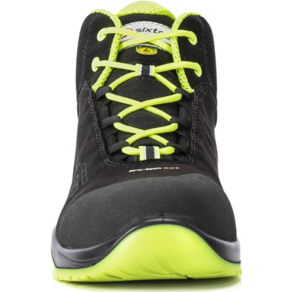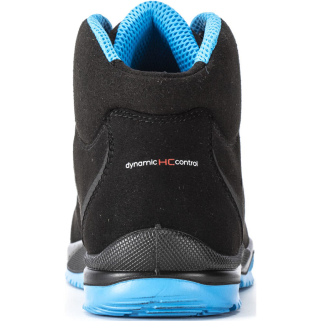 De ingebouwde Dynamic HC control enkelbrace en plastic voetsteun (Stabil Active) houden de hiel in de juiste stand, geven steun aan hiel en voetboog en controleren de zijwaartse beweging van de enkel. De schokabsorberende en antislip PU/PU loopzool is dankzij de felle kleuren goed zichtbaar. De zool heeft een ESD-compound die elektrostatische oplading voorkomt door deze af te voeren richting aarde. Antistatische WED-strips van koolstofvezel helpen deze compound om vonkvorming te voorkomen. De tenen worden beschermd door een Alu-SXT veiligheidsneus die het gewicht omlaag brengt, maar desnoods een 200 joules impact kan weerstaan.