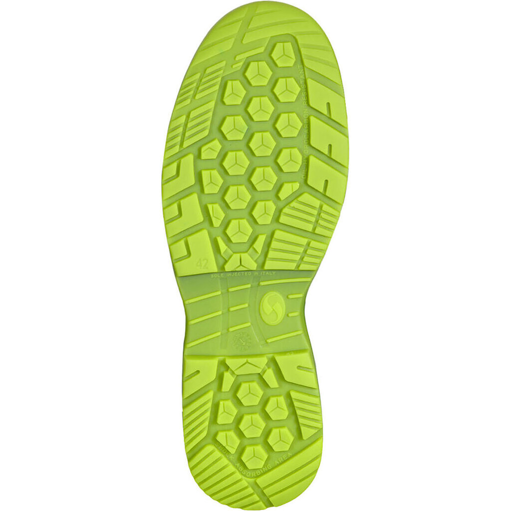 De tenen worden beschermd door een Fibercap (glasvezel) neus. De schoen is daarnaast uitgerust met een SRC-antislip PU/PU loopzool, met daarachter D30® als schokabsorberende laag. De synthetische KX antiperforatiezool biedt bescherming tegen een 3,0 mm spijkerpunt.