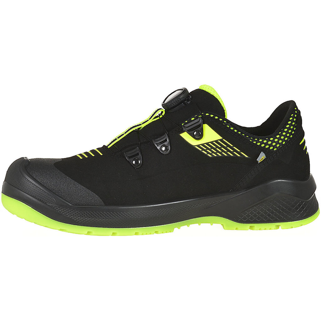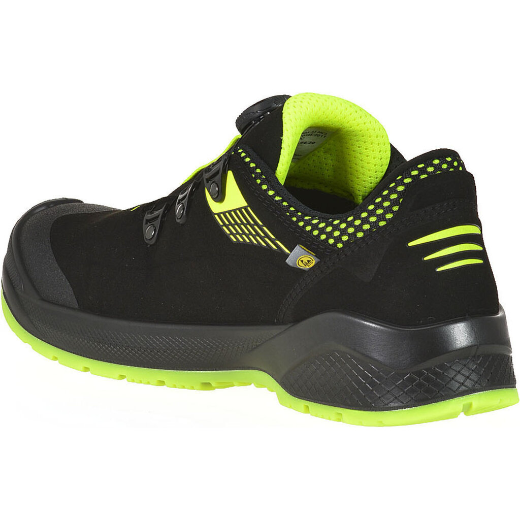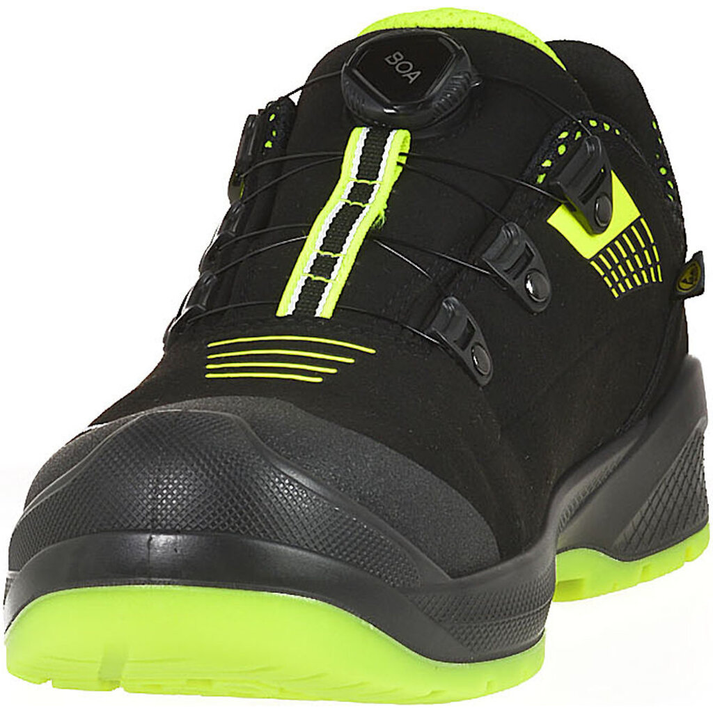 De Forza BOA® met S3 en ESD-normering heeft een waterafstotend bovenwerk van duurzaam en licht microvezel-suède en een ademende 3D Green Air voering. De moderne schoen is gemaakt uit deels gerecyclede en geheel diervriendelijke materialen.