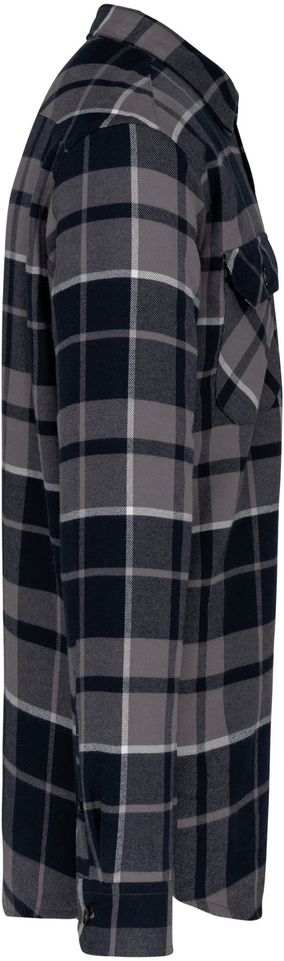 Klassiek houthakkershemd van 100% katoen met een synthetische zachte vachtvoering, ook in de mouwen. Met 2 borstzakken. Leverbaar in stormgrijs en rood, met marineblauwe contrastruitjes.