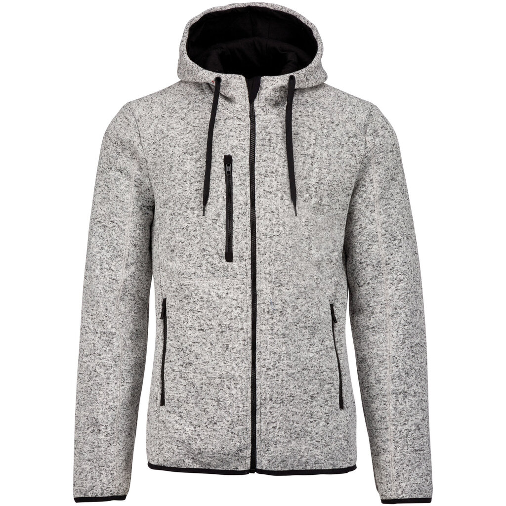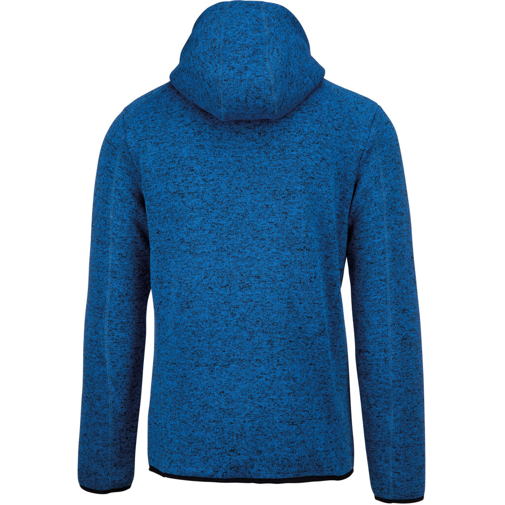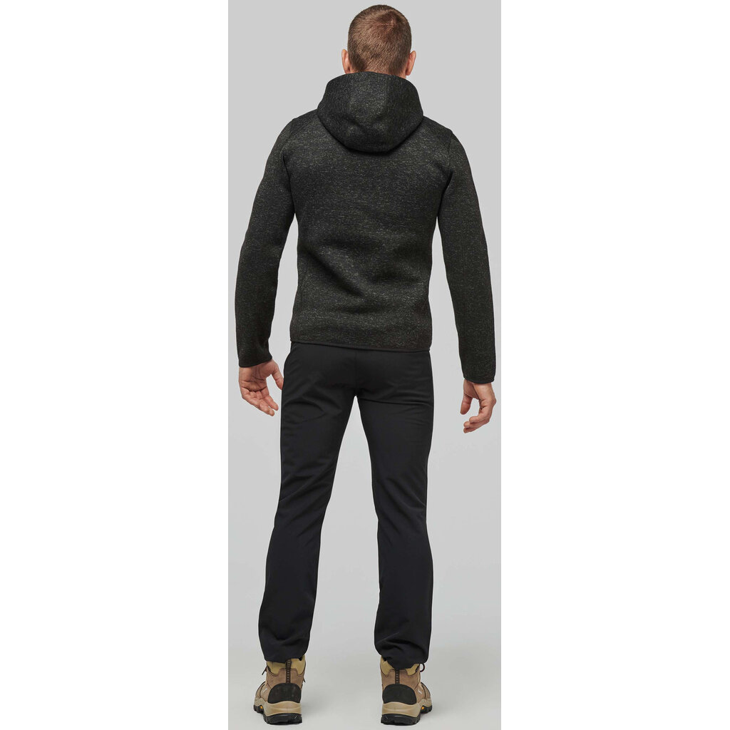 Kariban ProAct herenvest PA365, met een warm en dik gebreid 100% polyester tricot met geborstelde binnenzijde. Tevens 100% katoenen jerseyvoering van de capuchon. De onderkant en mouwuiteinden zijn afgewerkt met elastische biaisbanden in donkere contrastkleur.