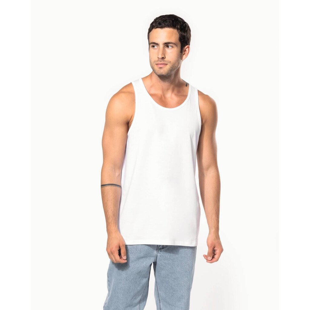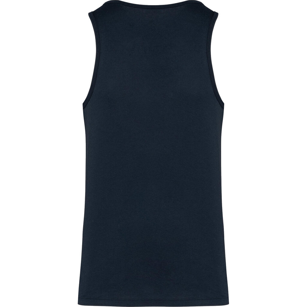 De boord heeft een dubbel stiksel en de mouw- halsopeningen zijn toon-op-toon afgewerkt. De tanktop heeft een fitted pasvorm. Al het katoen van de tank top is duurzaam.