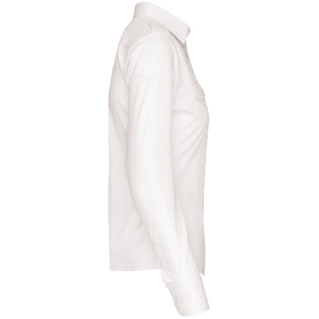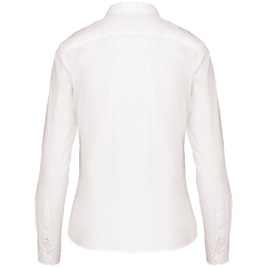 Overhemd voor dames, gemaakt van popelinekatoen en polyester. Deze representatieve K506 van Kariban is verkrijgbaar in het wit en zacht lichtblauw. Het is gemakkelijk in onderhoud (kreukt niet snel en laat zich makkelijk strijken) en de rugplooi zorgt dat je altijd goed kunt bewegen.