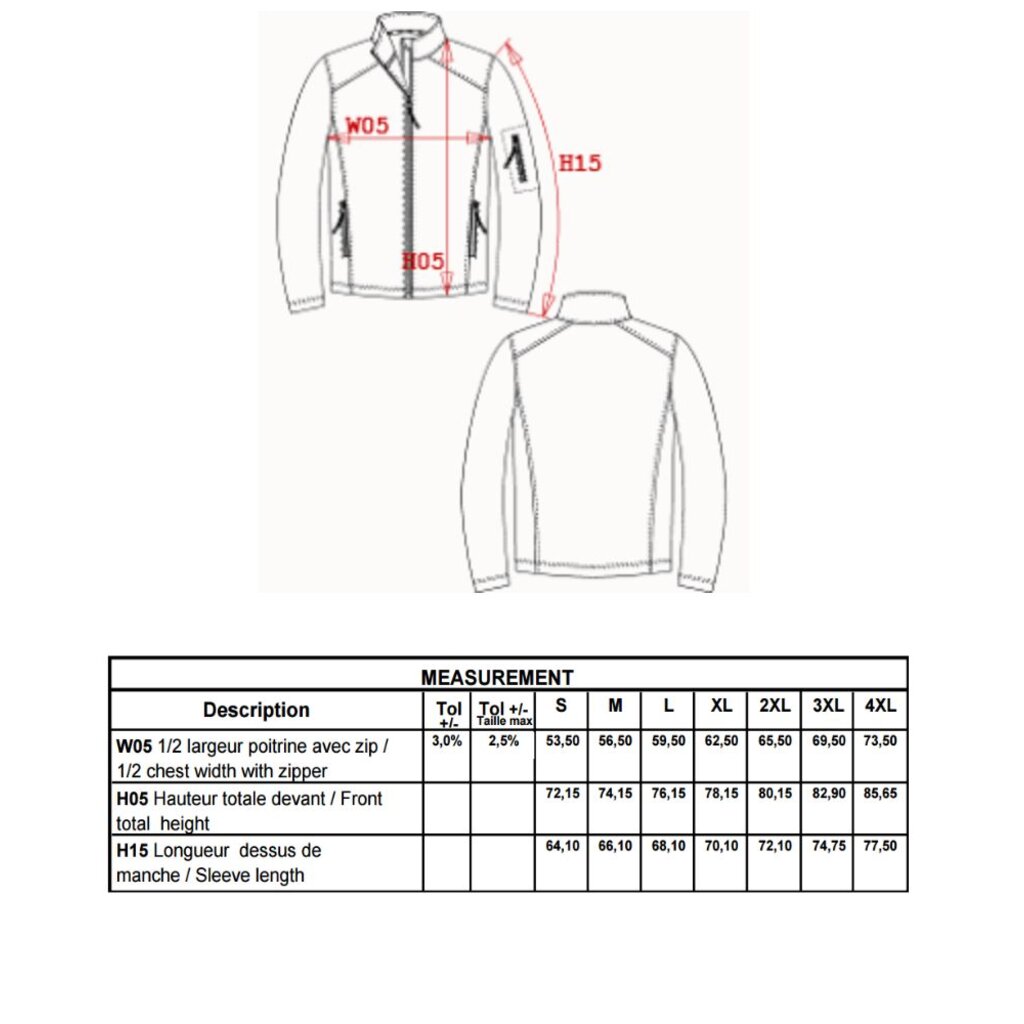 - Stof in 3 lagen aan elkaar geklit, ademend 3000 gr/m2/24H en 8000 mm waterdicht