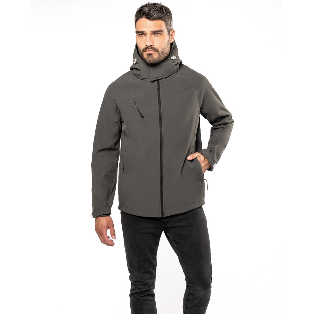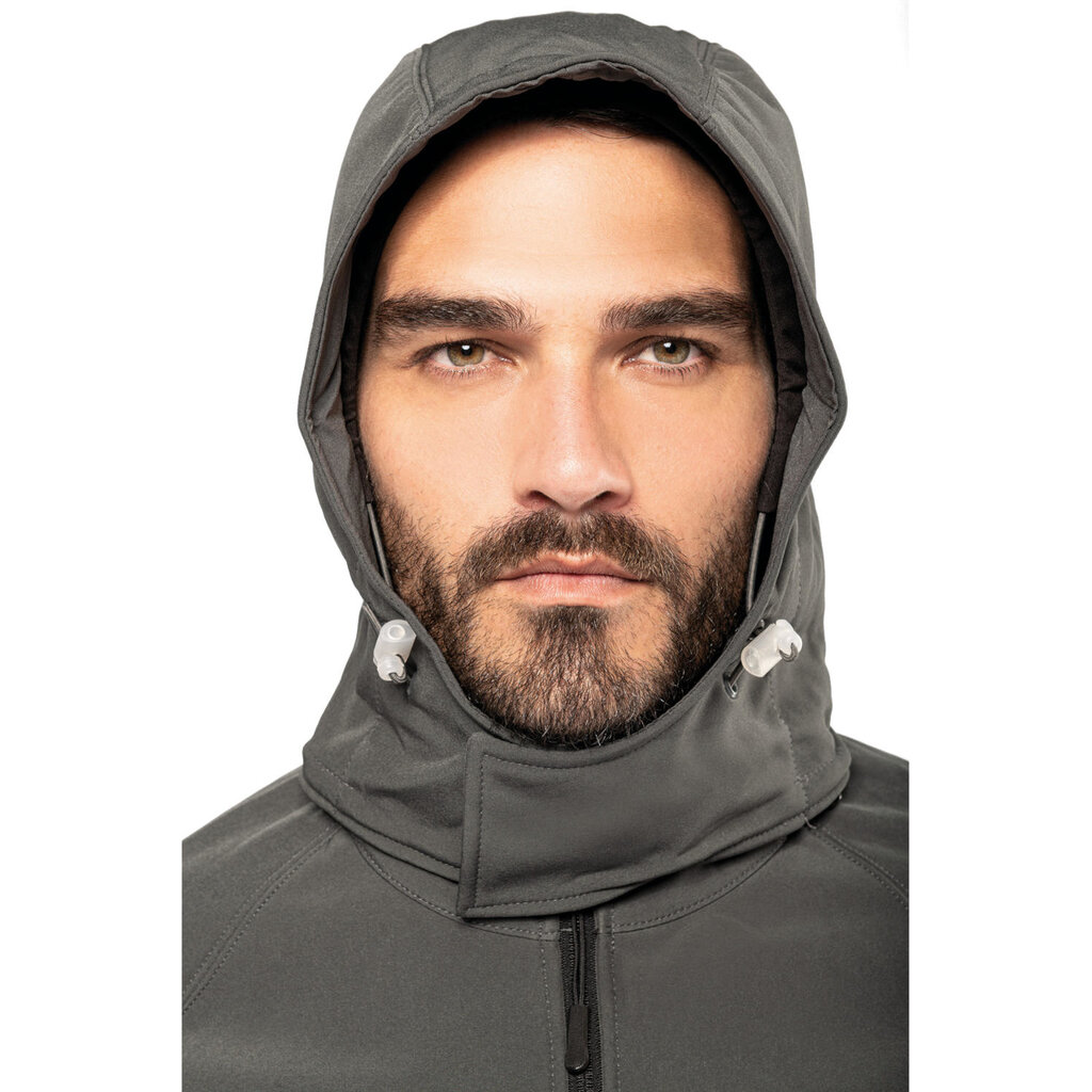 Heren Softshell jas van Kariban, model K413 met capuchon. Ook leverbaar in dames versie (K414).