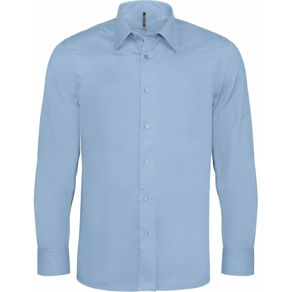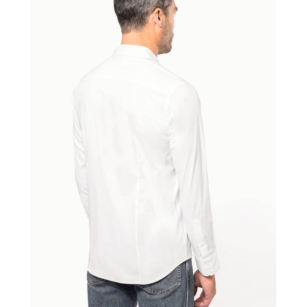 97% katoen / 3% elastaan, een fijne dunne stof. Het overhemd heeft weliswaar lange mouwen, maar de stof maakt hem zeker ook geschikt voor lentedagen.