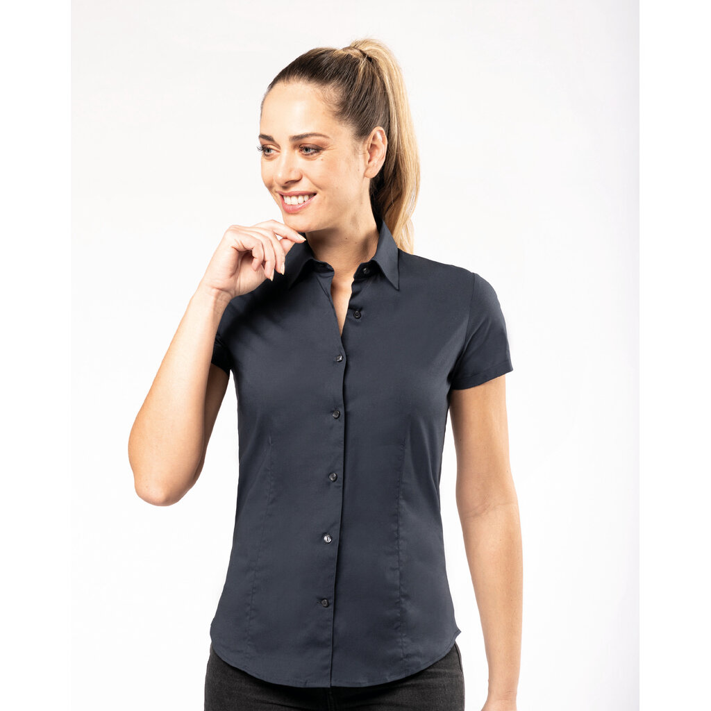 Een fijne blouse in een vasthoudende kleur geschikt voor elke situatie zowel werk als casual. De korte mouwen en de dunne doch stevige stretch stof maken deze blouse perfect voor de lente- en zomerdagen.