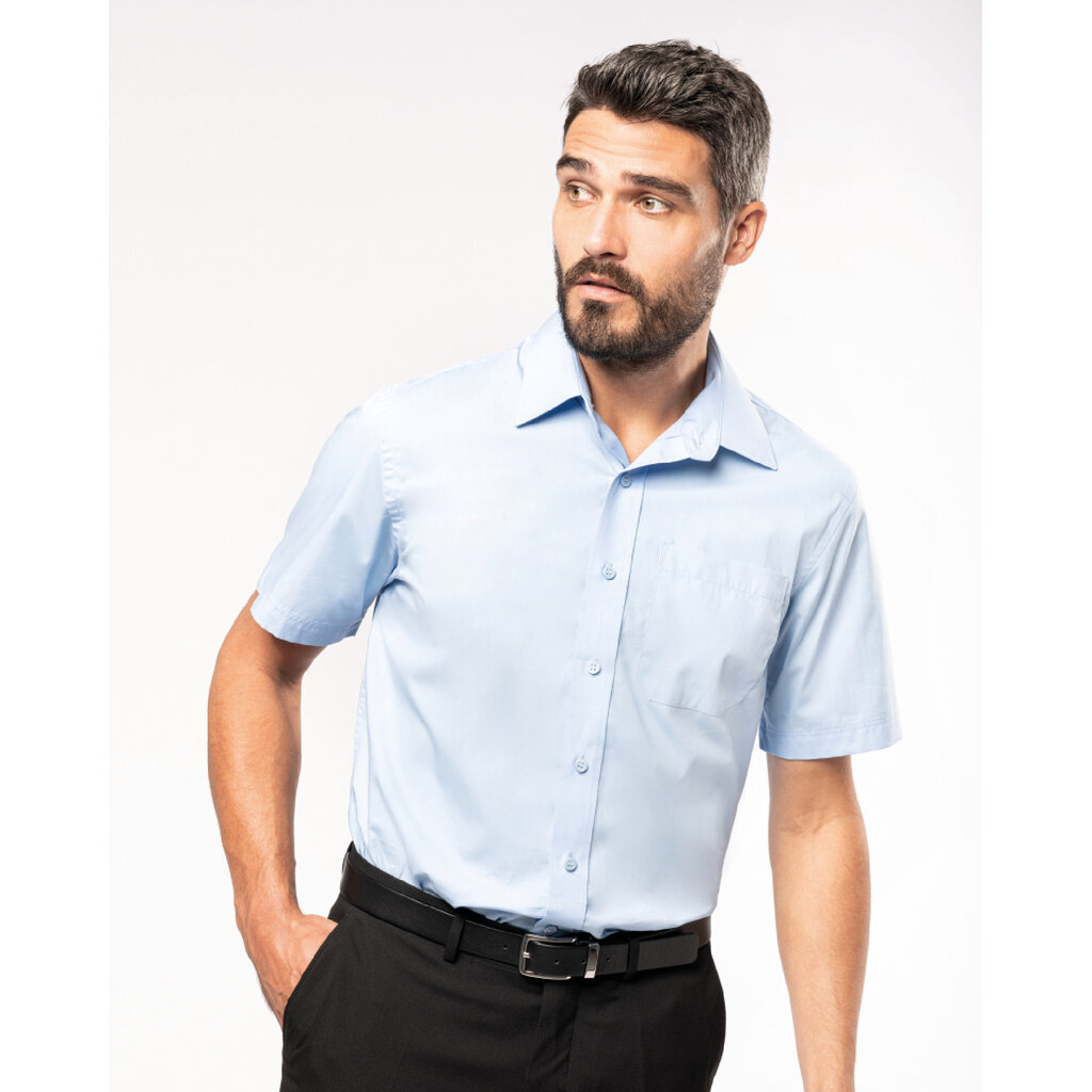 Kariban Herenoverhemd met korte mouw, model K543, elegant en klassiek model met discrete afwerking. Door de Easy-Care behandeling is hij eenvoudig in onderhoud.