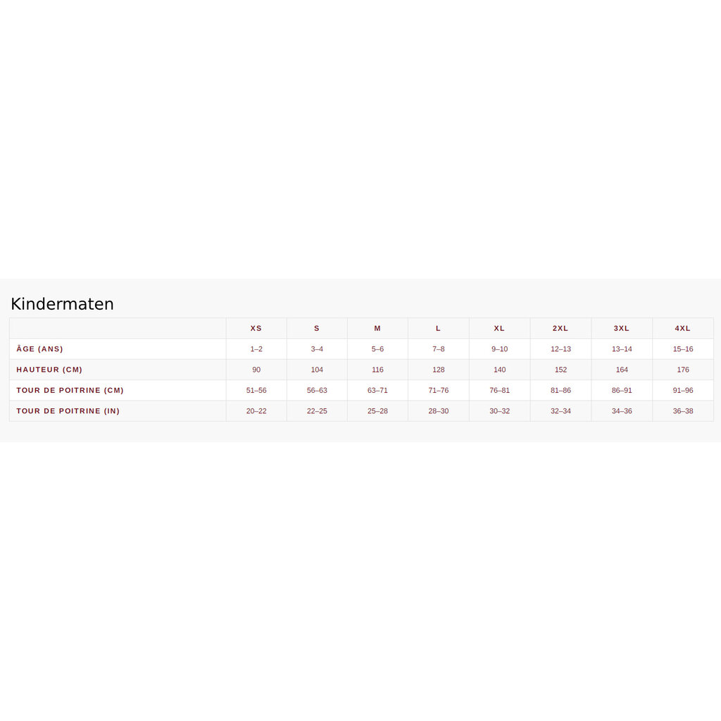 Blaklader Kinderkleding maatinfo