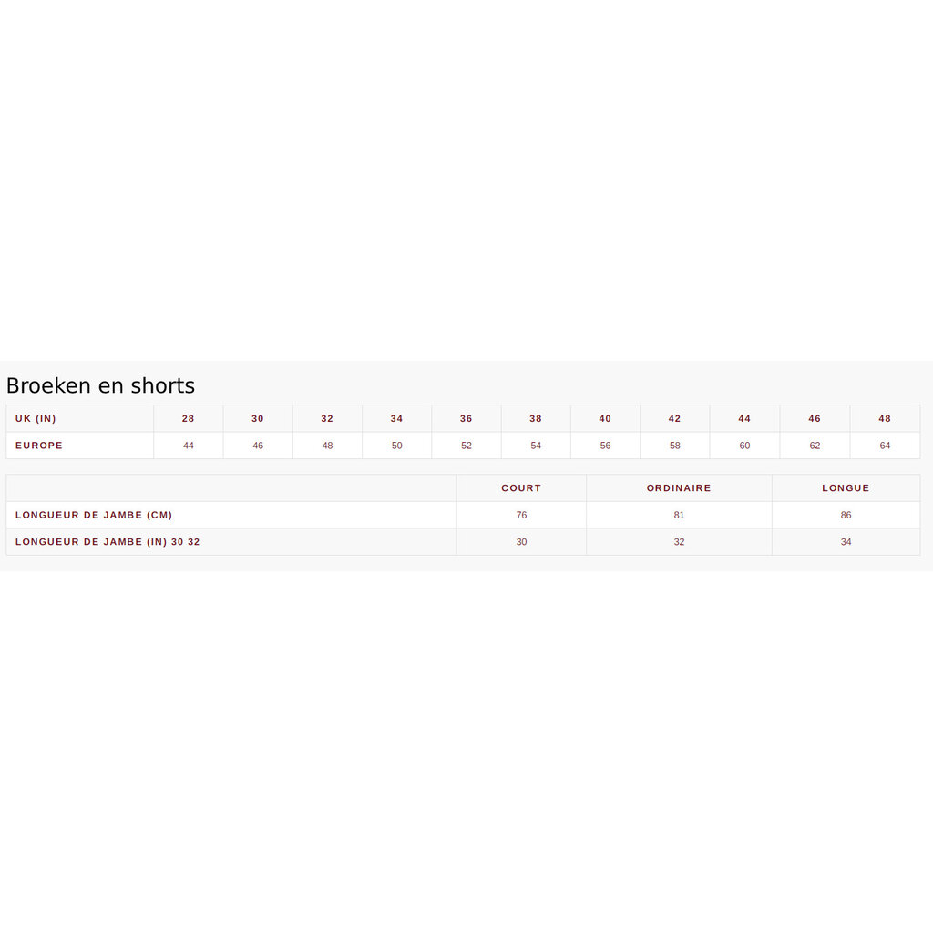 Workman Korte Broek maatinfo