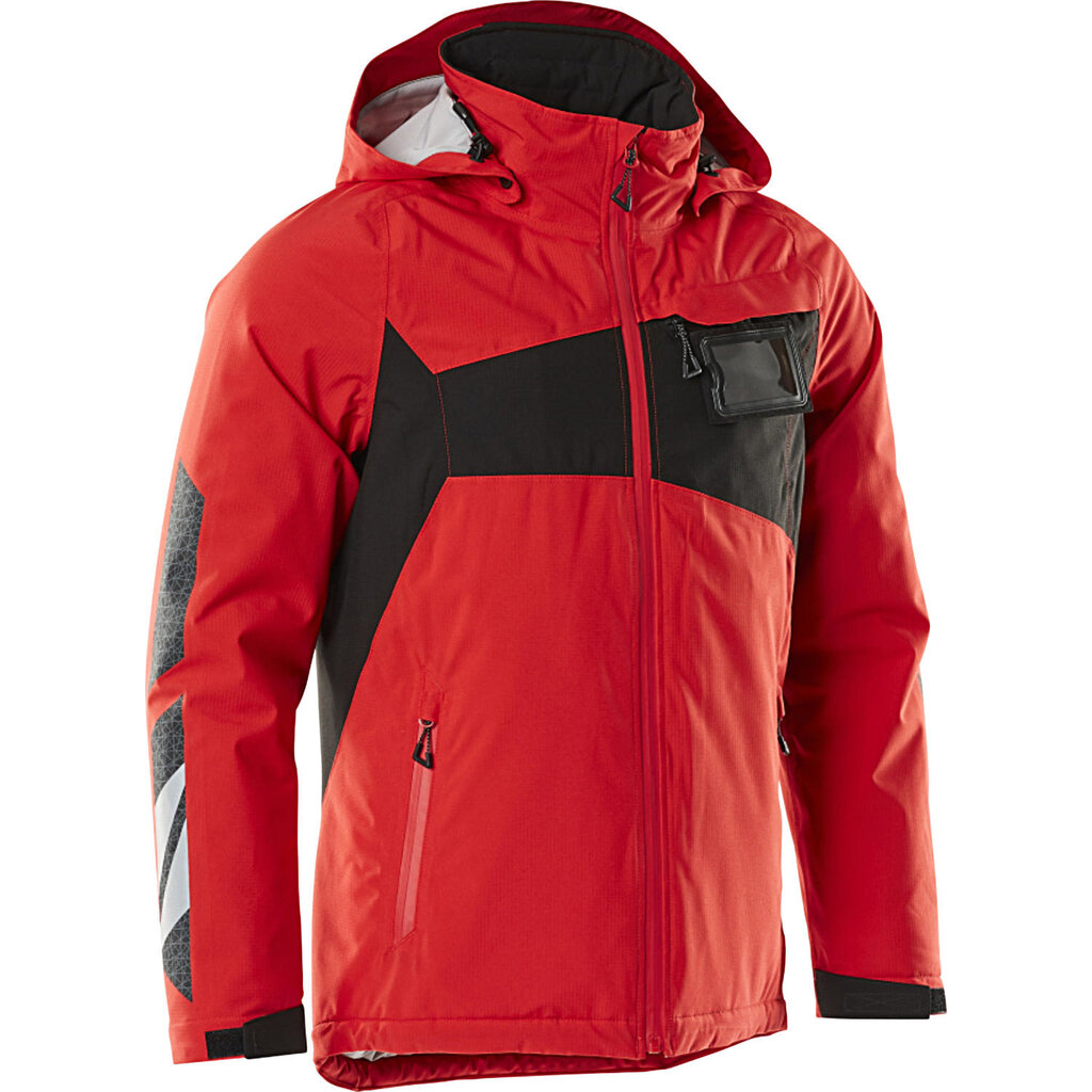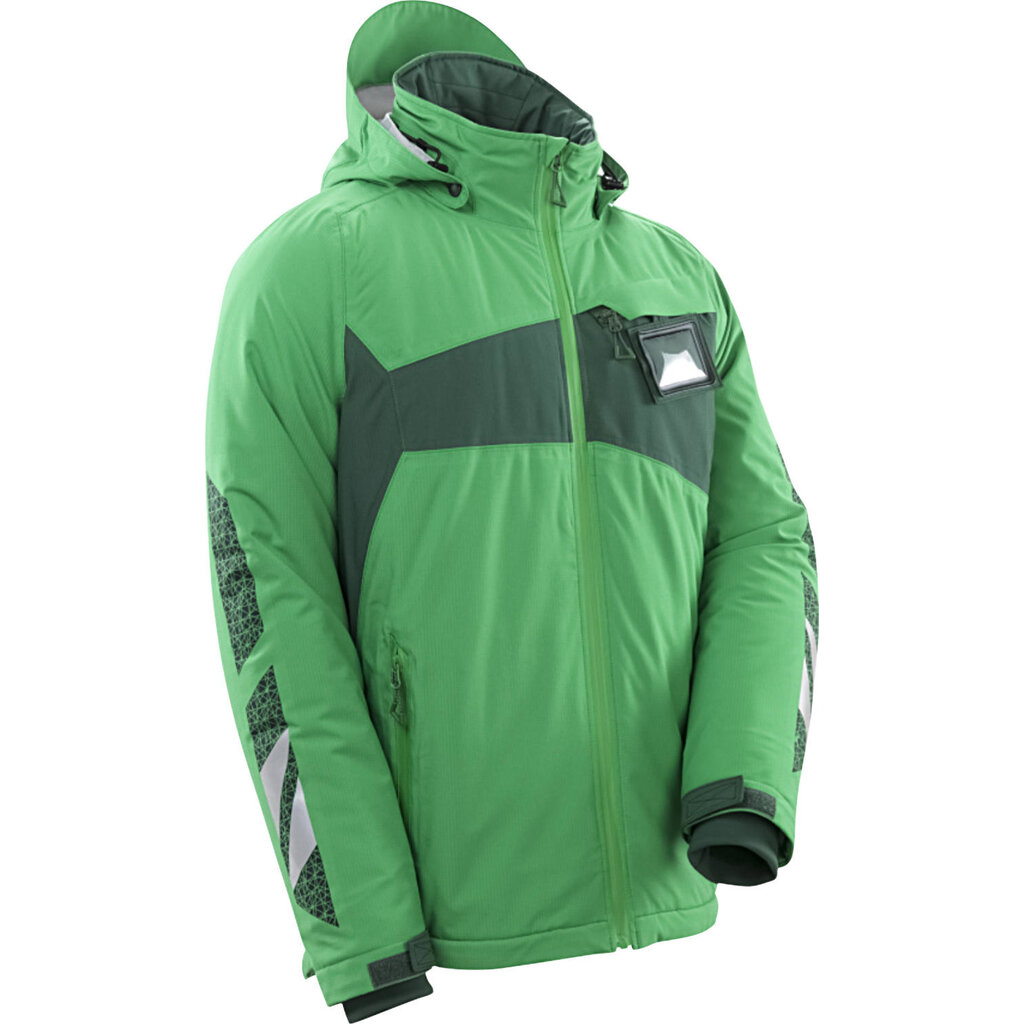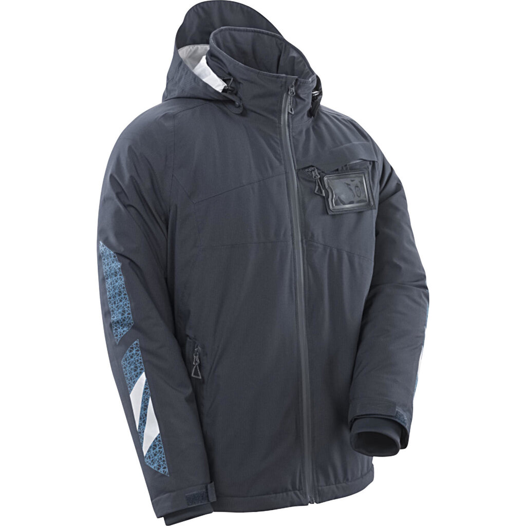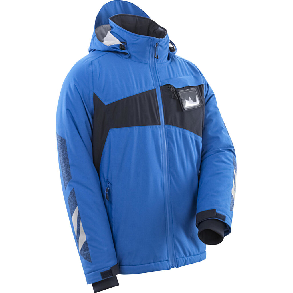Lichte winterjas uit Mascot's moderne Accelerate-lijn, leverbaar in diverse kleuren en kleurcombinaties, met een ruime maatkeuze. Dit jack is aanzienlijk lichtdragend maar wel uitgerust met voorzieningen die hem winddicht en waterafstotend houden (getapete naden, gevoerde capuchon, windvangers, verstelbare elastische onderzijde). Daardoor is hij gecertificeerd met veiligheidsnormering EN 342 3/WP.