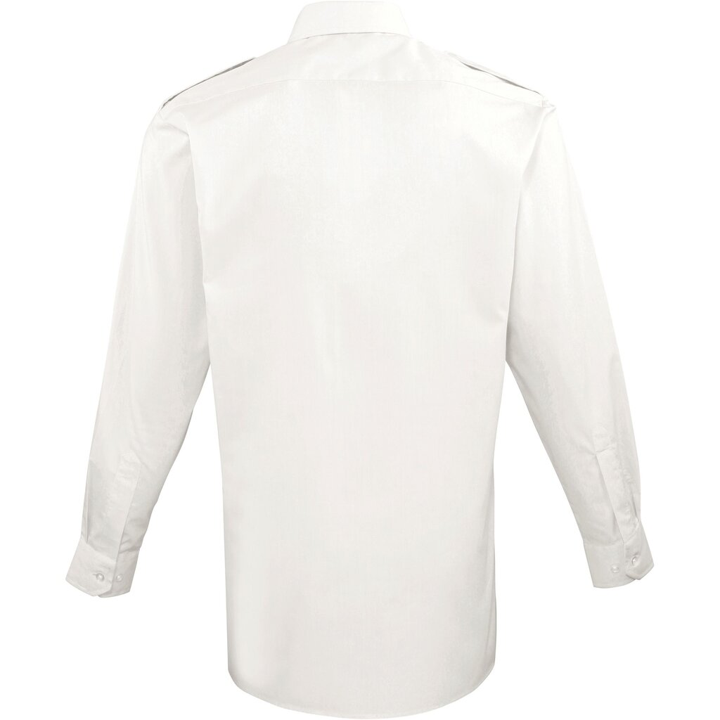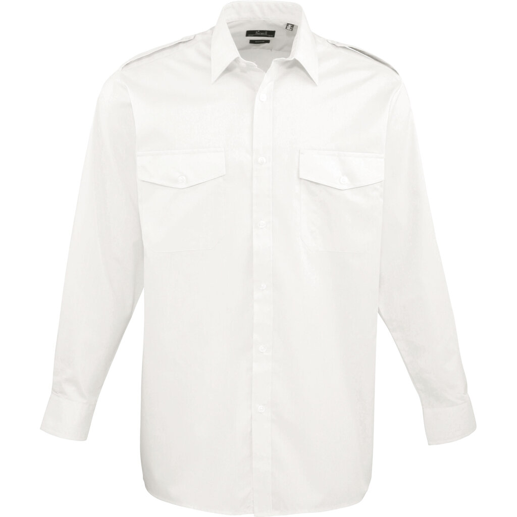 Makkelijk te onderhouden pilotenoverhemd (blouse) met lange mouwen, borstzakken en epaulettenbanden. Leverbaar in het wit.