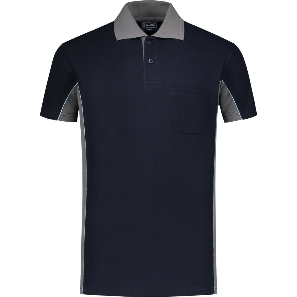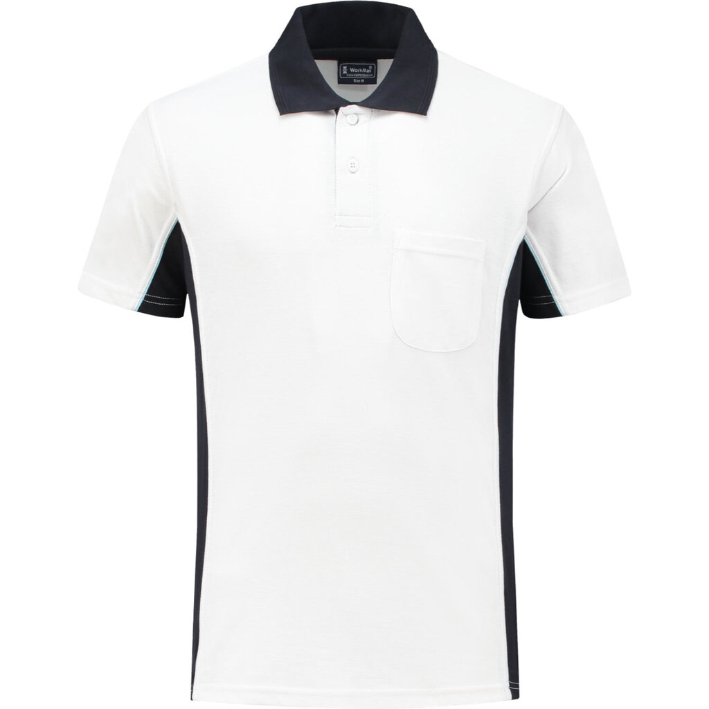 Tweekleurig poloshirt van WorkMan in verschillende combinaties, met een doek van hoogwaardig katoen en een klein beetje polyester dat op 60°C mag worden gewassen.