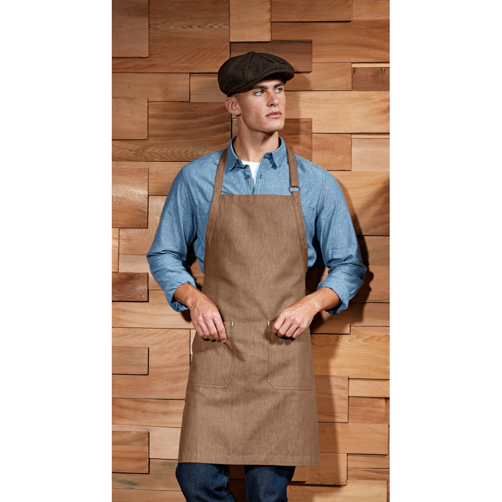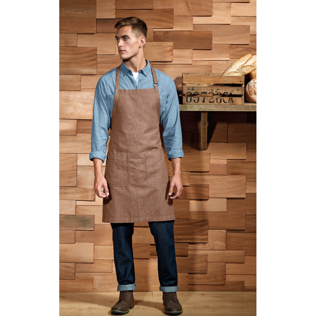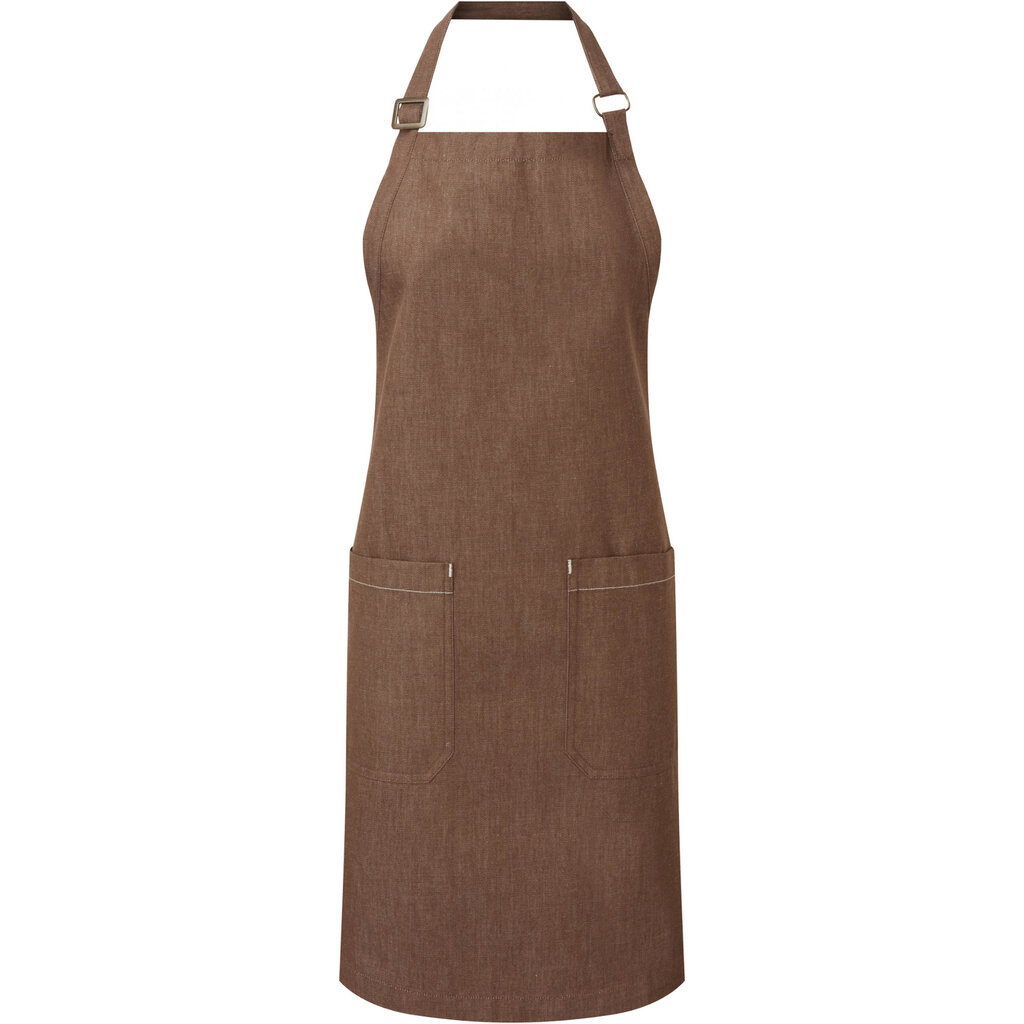 One-size, unisex schort van Premier, geschikt voor zowel horecapersoneel of thuisgebruik. Dit PR113 schort heeft twee opgezette zakken die zijn afgewerkt met contrastnaden, en is gemaakt van denimstof van biologische afkomst, verkregen uit Fair Trade. Het denim zorgt voor een stoer, robuust uiterlijk! Keuze uit bruin, indigoblauw en zwart.