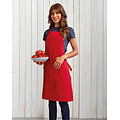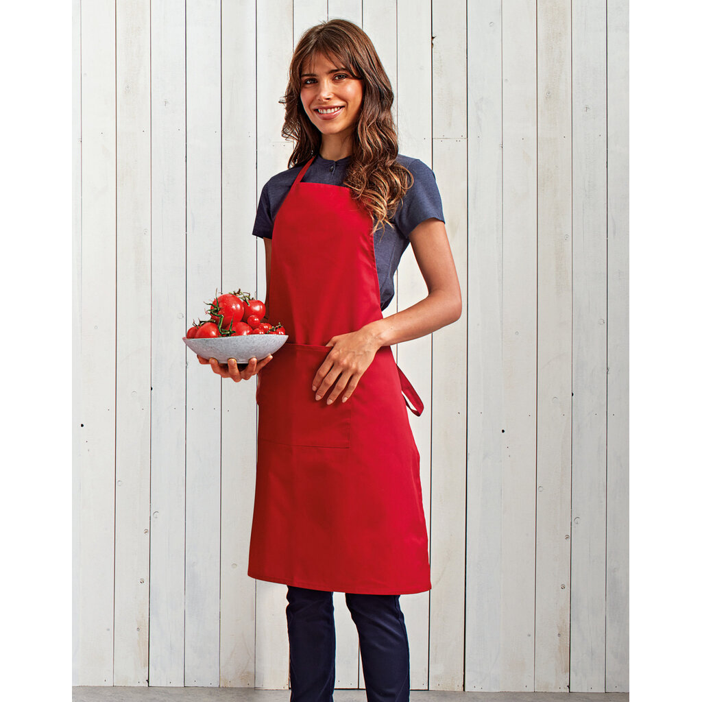 Lang effen schort met groot voorzak. Leverbaar in 9 kleuren. Met verstelbaar lint.