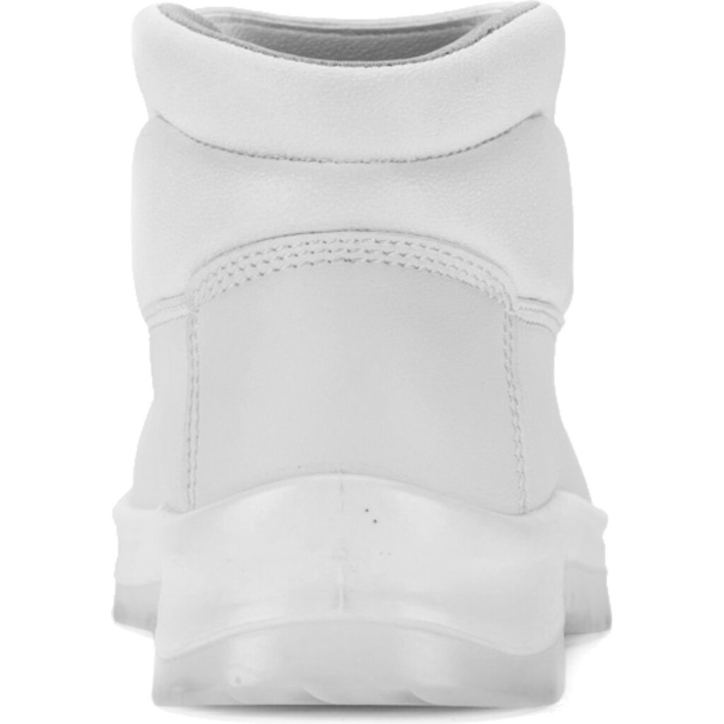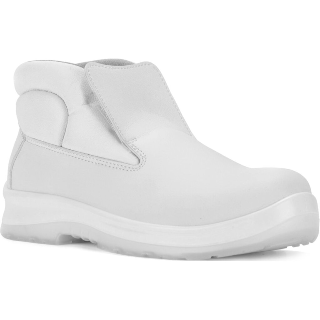 Hoge veiligheidsschoenen in het wit van Sixton model Verona. De Verona is een lichtgewicht veiligheidsschoen met composiet neus en vuilafstotend bovenwerk, gecombineerd met een antibacteriële inlegzool en voering. Zeer geschikt voor bijvoorbeeld de voedselverwerkende industrie.