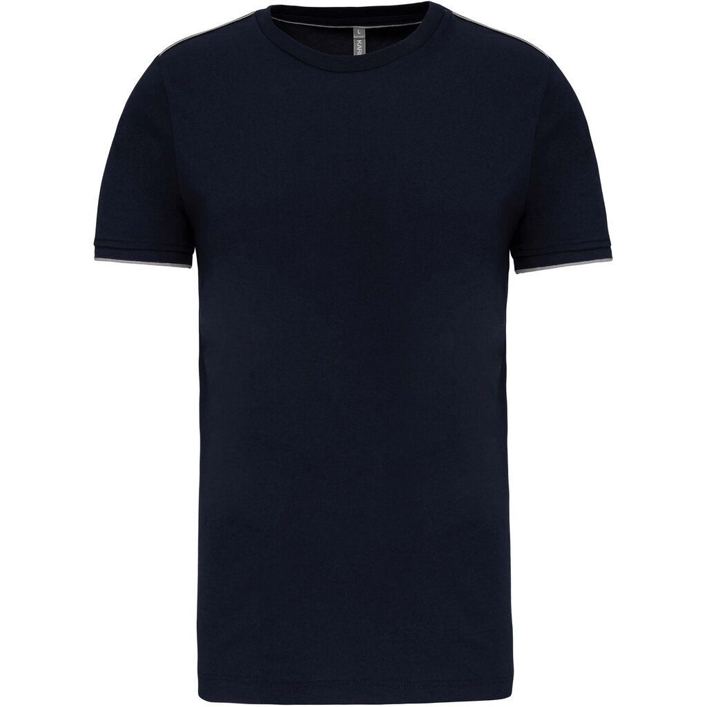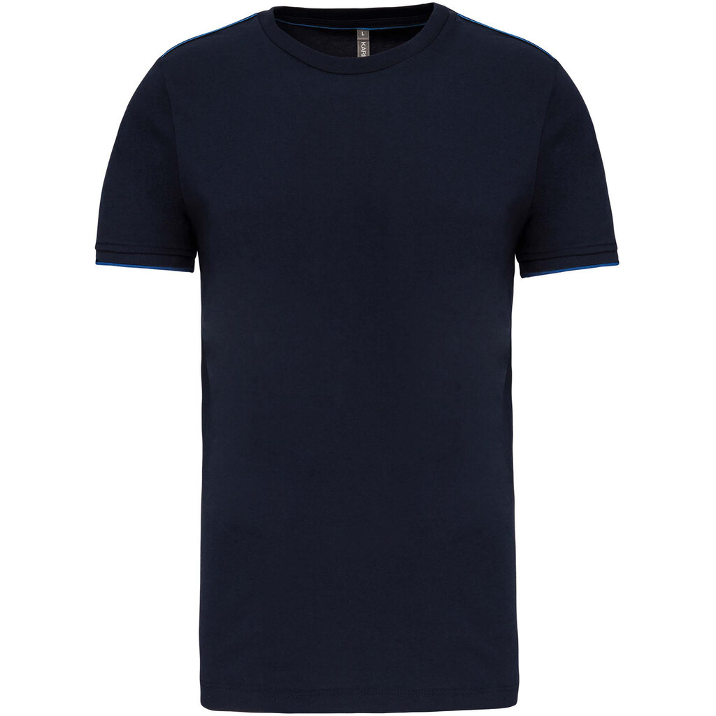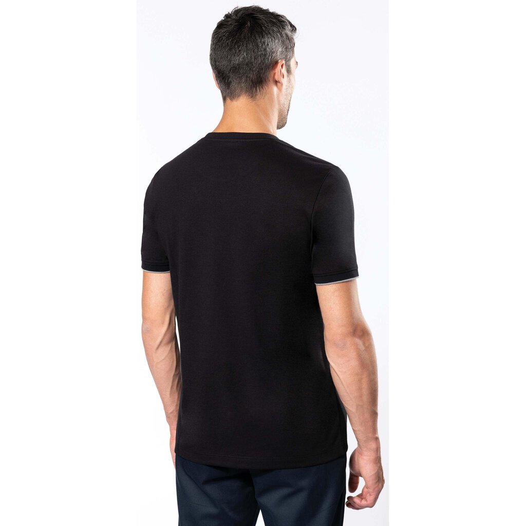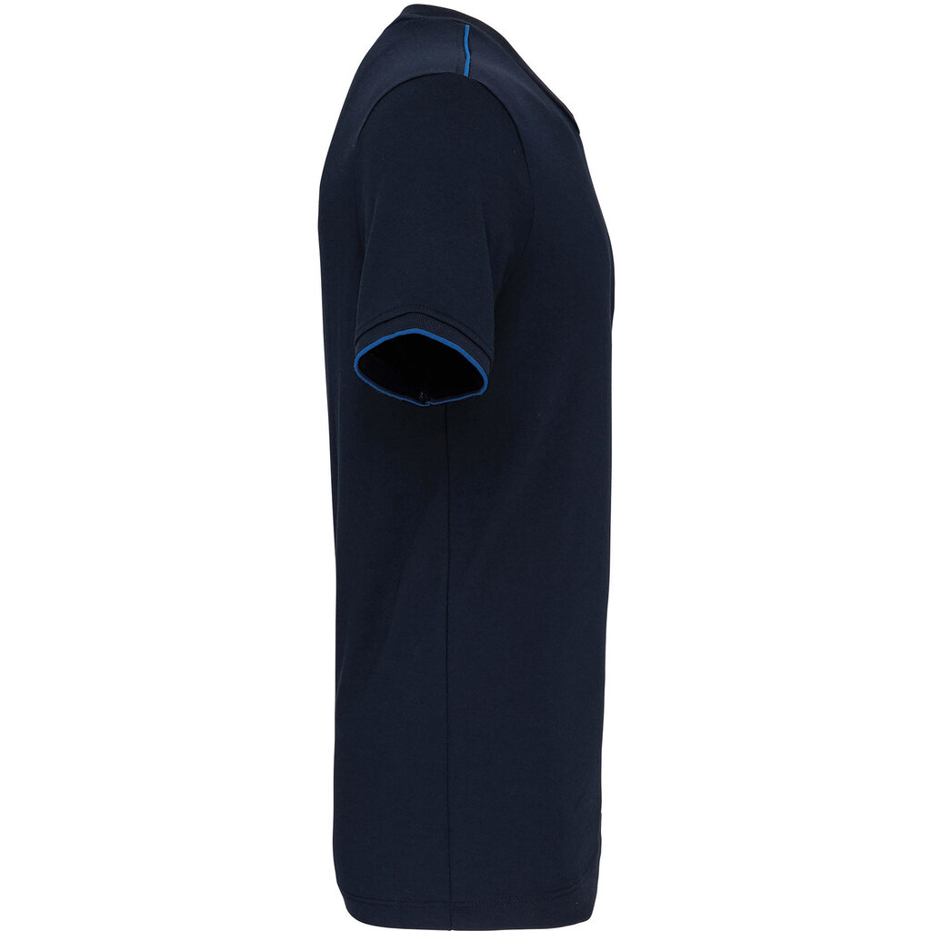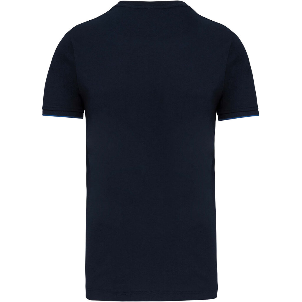 Dit shirt mag op 60°C worden gewassen, wat het des te praktischer maakt. De afwerking met dubbel stiksel aan de onderkant zorgt voor extra duurzaamheid. Aan de mouweinden en over de schouders is een contrasterende bies bevestigd aan een ribboord inzetstuk.