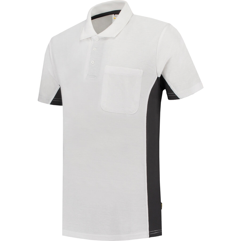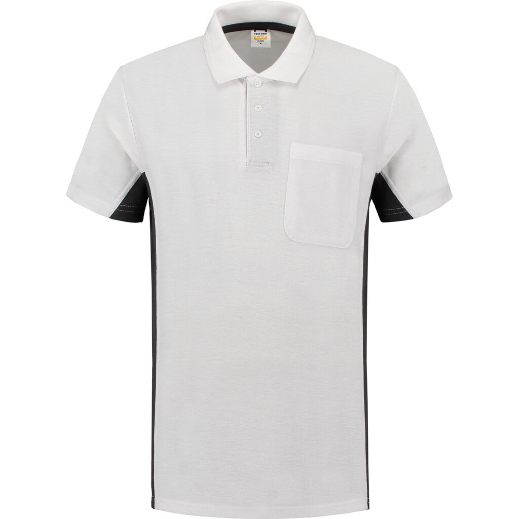 Poloshirt Bi-Colour model TP2000 van Tricorp. Vooral geschikt voor schilders en stucadoors of bedrijven met een wit/grijze huisstijl.