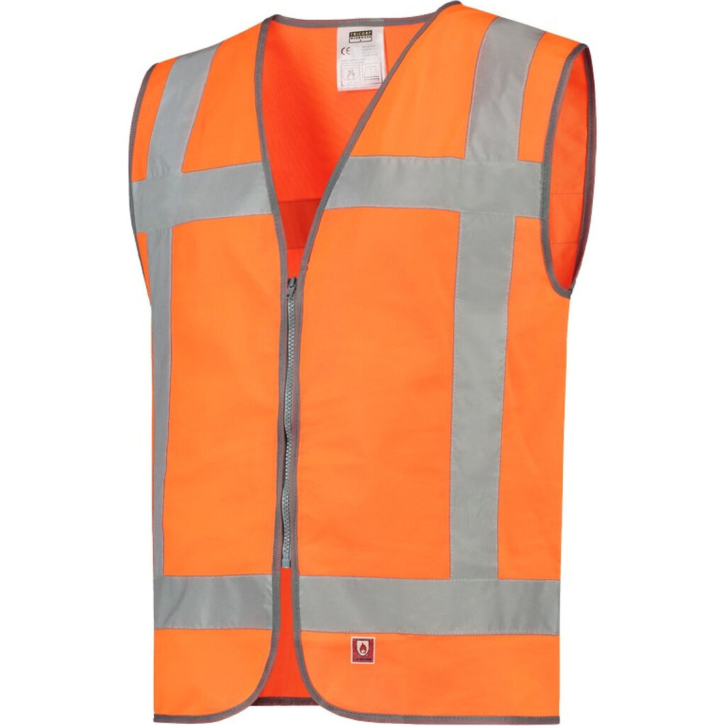 Dit Tricorp veiligheidsvest, heeft een hoge zichtbaarheid door de reflecterende striping en is gemaakt van vlamvertragend doek. Verkrijgbaar in de kleuren fluor geel en oranje. Uitgevoerd volgens de richtlijnen van Rijkswaterstaat.
