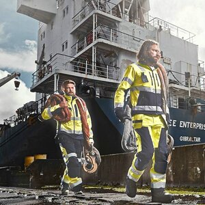 Opvallende werkkleding is altijd (gedeeltelijk) geel of oranje met reflectie strepen. In vaktermen heet dit High Visibility Workwear.