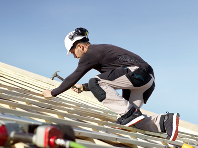 Werken op daken stelt hoge eisen aan de kleding. Bij werkkleding voor dakdekkers is het essentieel dat er stevige kniebescherming inzit, met veel bewegingsvrijheid.