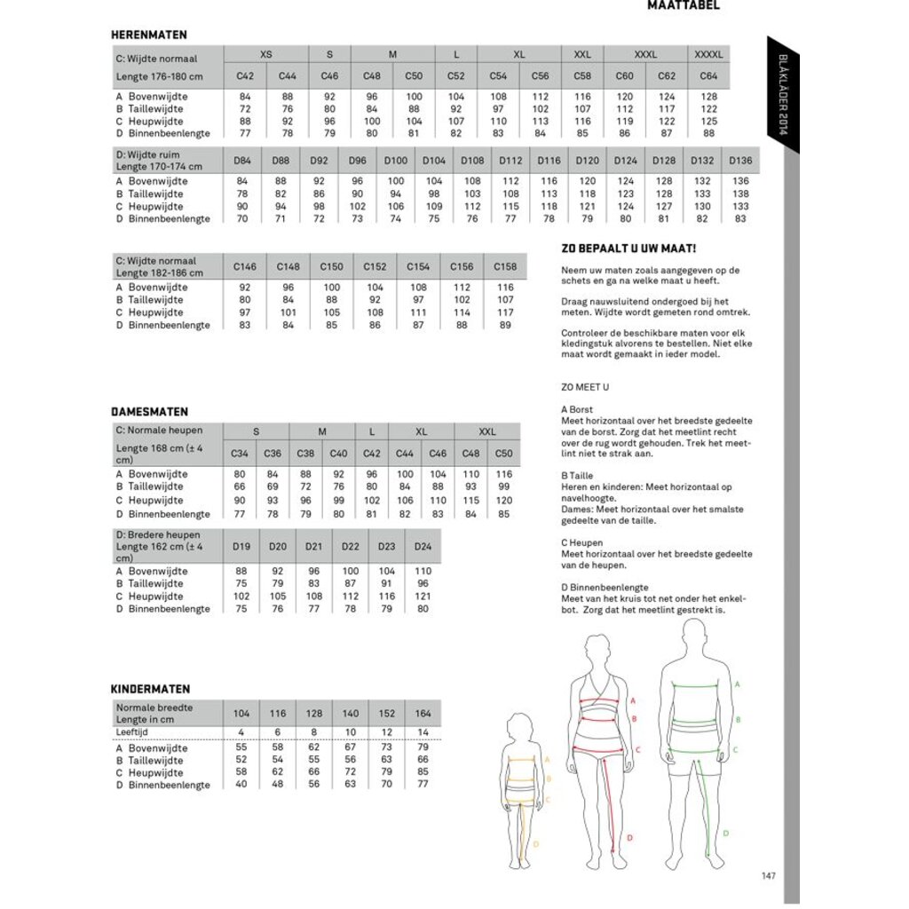 De maatstaf voor de verlenging is de Binnenbeenlengte, zie lijn D op de afbeelding. Het is mogelijk bij bijna alle Blaklader broeken, maar niet aan te raden voor bijvoorbeeld de volgende modellen: 1959, 1409, 1960 en 1999. Ook is het niet mogelijk bij gevoerde winter werkbroeken en bij High Visability broeken.