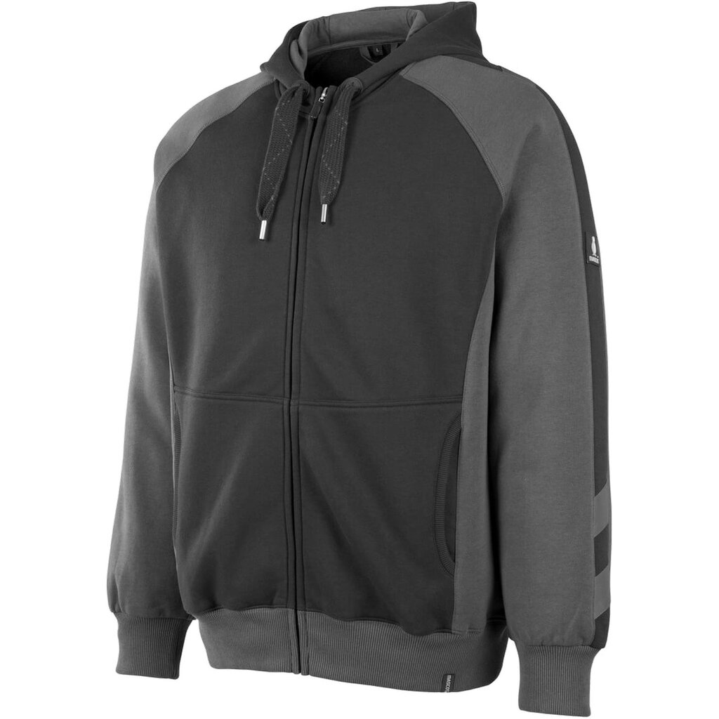 Mascot sweatvest met capuchon, die een getailleerde en moderne pasvorm combineert met veel bewegingsruimte en draagcomfort. Uitvoering van de Regensburg Hoodie met deelbare rits. Robuust en stoer uiterlijk met brede trekkoorden, verkrijgbaar in verschillende kleurcombinaties.