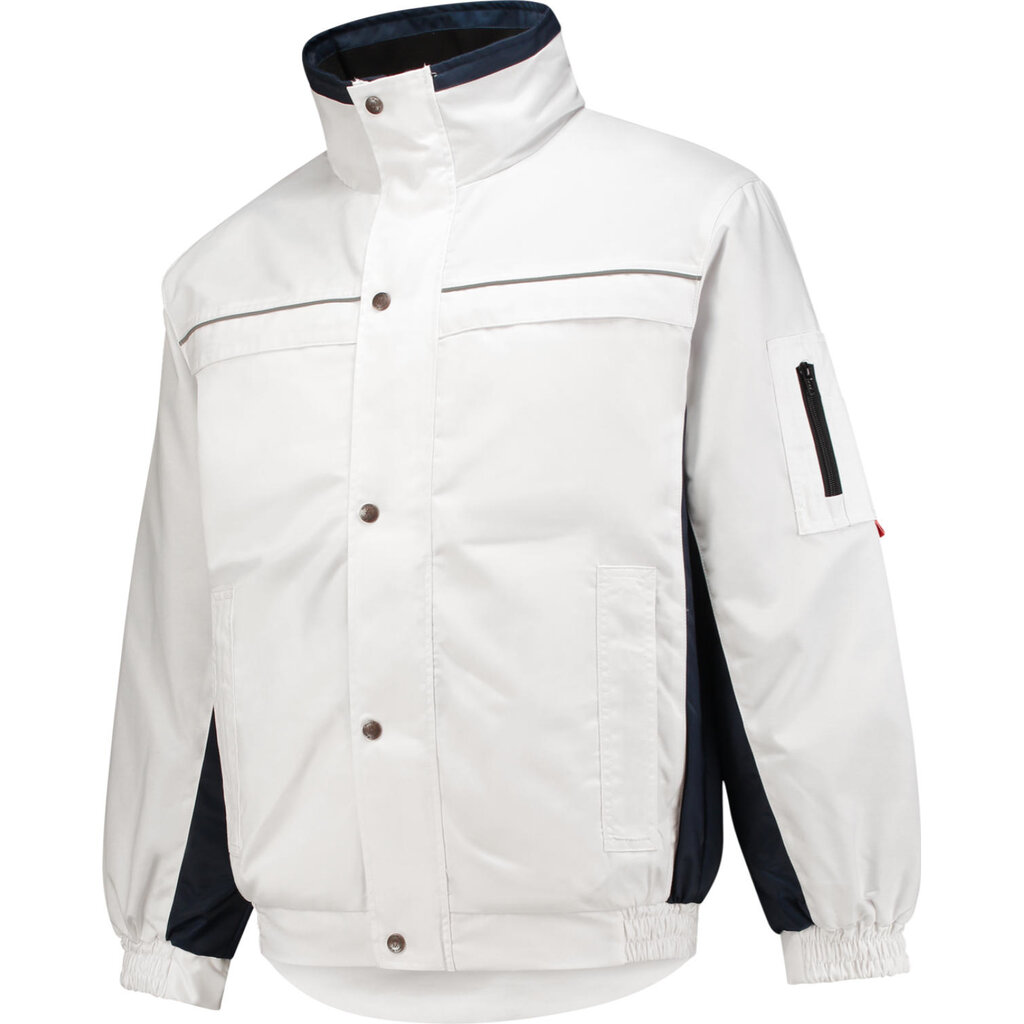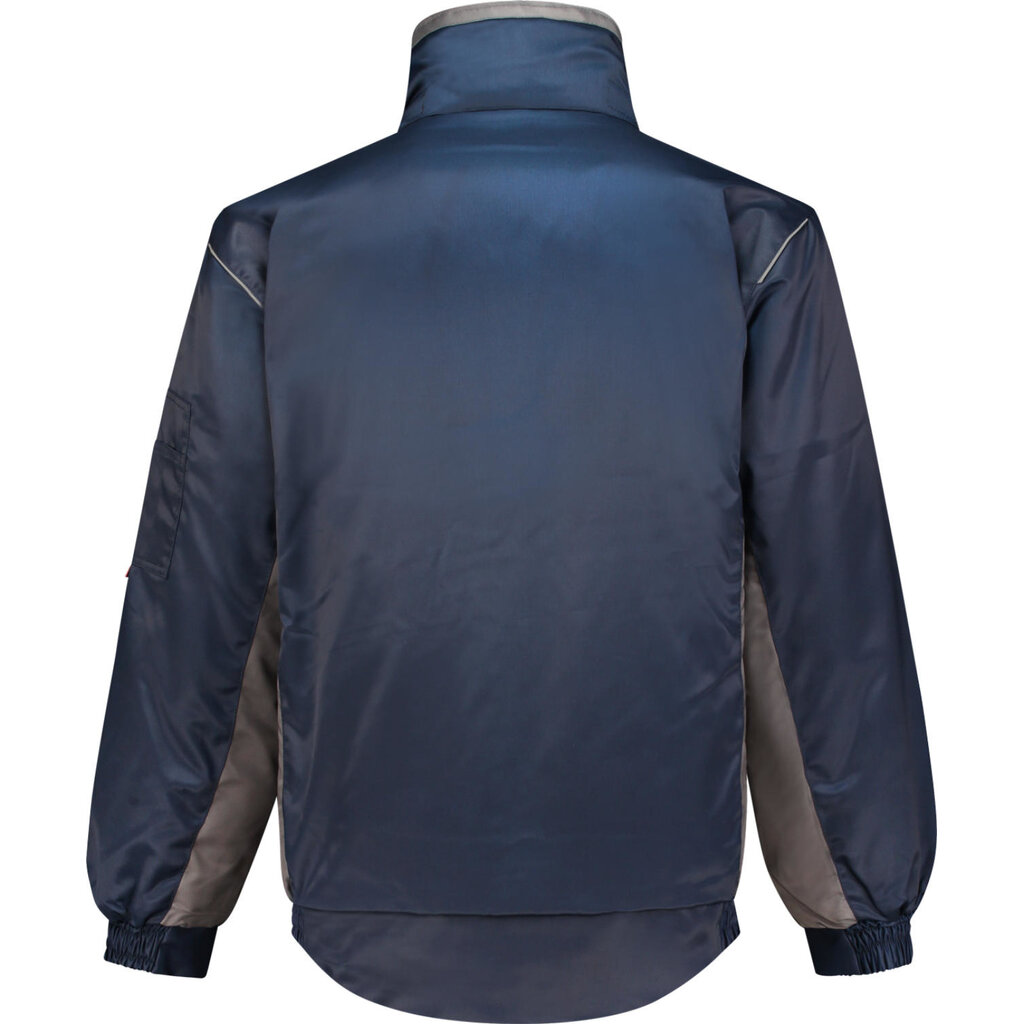 Workman beaver pilot jack, tweekleurig met reflectiebiezen. Steekzak met gsm-zakje en 2 verdekte bor